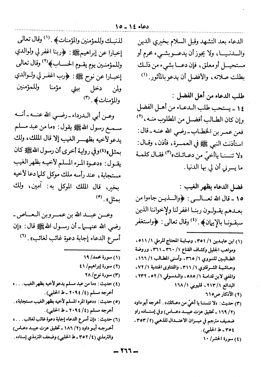 14 - يُسْتَحَبُّ طَلَبُ الدُّعَاءِ مِنْ أَهْل الْفَضْل وَإِنْ كَانَ الطَّالِبُ أَفْضَل مِنَ الْمَطْلُوبِ مِنْهُ، (2) فَعَنْ عُمَرَ بْنِ الْخَطَّابِ - رَضِيَ اللَّهُ عَنْهُ - قَال: اسْتَأْذَنْتُ النَّبِيَّ صَلَّى اللَّهُ عَلَيْهِ وَسَلَّمَ فِي الْعُمْرَةِ، فَأَذِنَ، وَقَال: لاَ تَنْسَنَا يَا أَخِي مِنْ دُعَائِكَ (3) فَقَال كَلِمَةً مَا يَسُرُّنِي أَنَّ لِي بِهَا الدُّنْيَا.