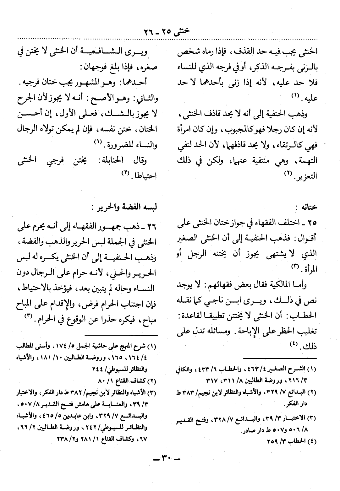 25 - اخْتَلَفَ الْفُقَهَاءُ فِي جَوَازِ خِتَانِ الْخُنْثَى عَلَى أَقْوَالٍ: فَذَهَبَ الْحَنَفِيَّةُ إِلَى أَنَّ الْخُنْثَى الصَّغِيرَ الَّذِي لاَ يُشْتَهَى يَجُوزُ أَنْ يَخْتِنَهُ الرَّجُل أَوِ الْمَرْأَةُ. (3)