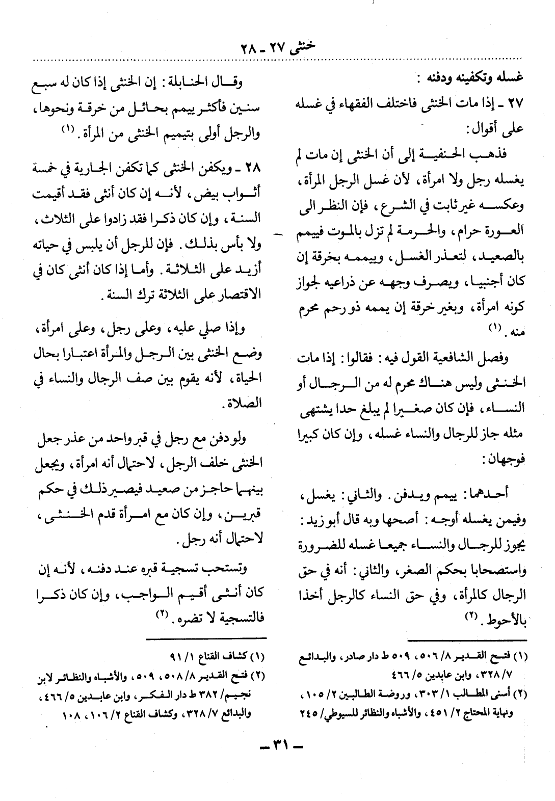 27 - إِذَا مَاتَ الْخُنْثَى فَاخْتَلَفَ الْفُقَهَاءُ فِي غُسْلِهِ عَلَى أَقْوَالٍ: