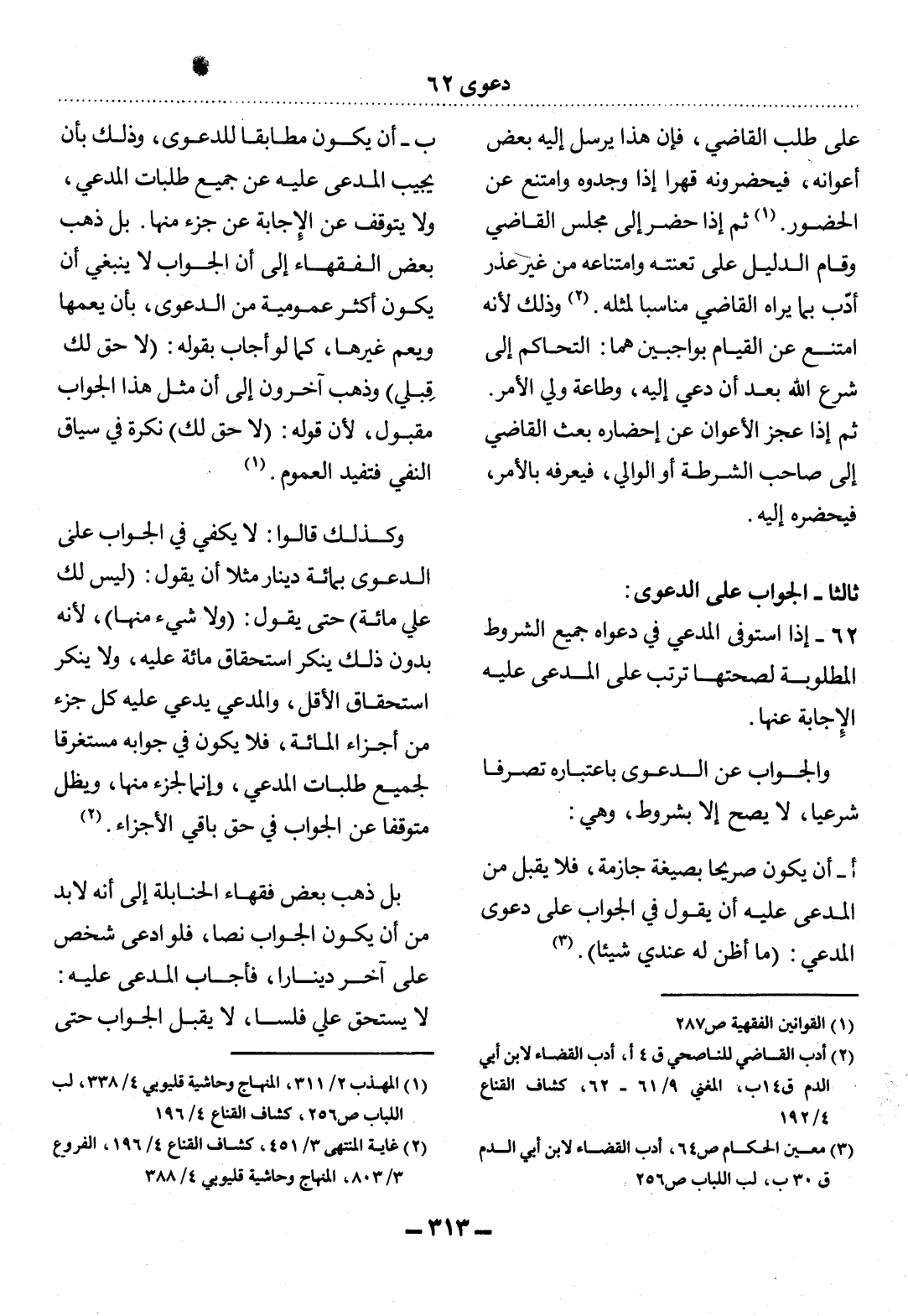 62 - إِذَا اسْتَوْفَى الْمُدَّعِي فِي دَعْوَاهُ جَمِيعَ الشُّرُوطِ الْمَطْلُوبَةِ لِصِحَّتِهَا تَرَتَّبَ عَلَى الْمُدَّعَى عَلَيْهِ الإِْجَابَةُ عَنْهَا.
