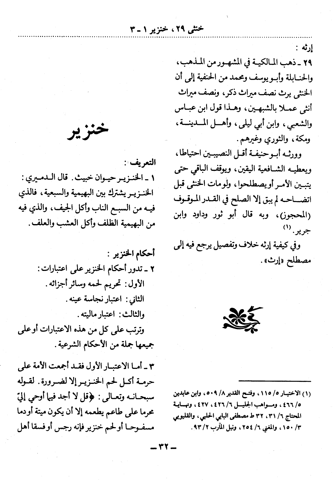 1 - الْخِنْزِيرُ حَيَوَانٌ خَبِيثٌ. قَال الدَّمِيرِيُّ. الْخِنْزِيرُ يَشْتَرِكُ بَيْنَ الْبَهِيمِيَّةِ وَالسَّبُعِيَّةِ، فَالَّذِي فِيهِ مِنَ السَّبُعِ النَّابُ وَأَكْل الْجِيَفِ، وَالَّذِي فِيهِ مِنَ الْبَهِيمِيَّةِ الظِّلْفُ وَأَكْل الْعُشْبِ وَالْعَلَفِ.