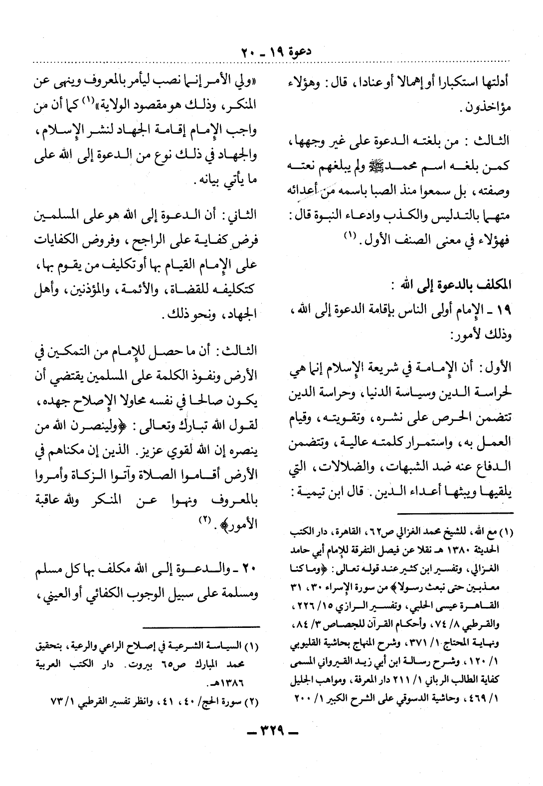 20 - وَالدَّعْوَةُ إِلَى اللَّهِ مُكَلَّفٌ بِهَا كُل مُسْلِمٍ وَمُسْلِمَةٍ عَلَى سَبِيل الْوُجُوبِ الْكِفَائِيِّ أَوِ الْعَيْنِيِّ،