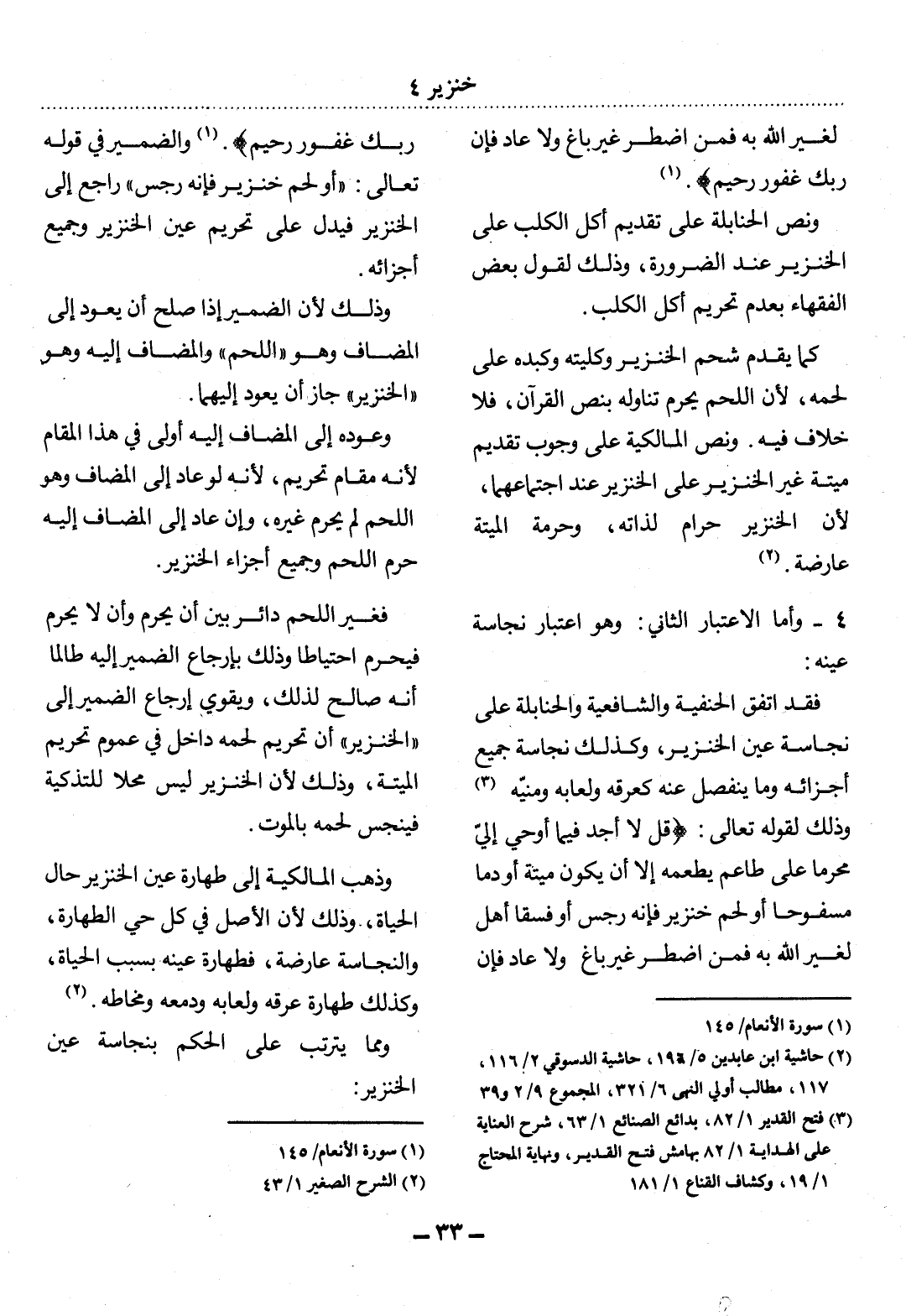 رَبَّكَ غَفُورٌ رَحِيمٌ} (1) . وَالضَّمِيرُ فِي قَوْله تَعَالَى: {أَوْ لَحْمَ خِنْزِيرٍ فَإِنَّهُ رِجْسٌ} رَاجِعٌ إِلَى الْخِنْزِيرِ فَيَدُل عَلَى تَحْرِيمِ عَيْنِ الْخِنْزِيرِ وَجَمِيعِ أَجْزَائِهِ.