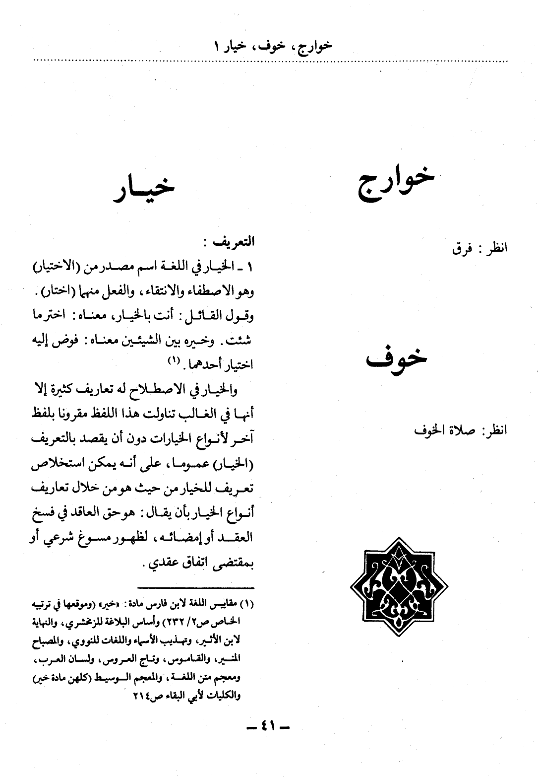 (1) مقاييس اللغة لابن فارس مادة: " خير " (وموقعها في ترتيبه الخاص ص2 / 232) ، وأساس البلاغة للزمخشري، والنهاية لابن الأثير، وتهذيب الأسماء واللغات للنووي، والمصباح المنير، والقاموس، وتاج العروس، ولسان العرب، ومعجم متن اللغة، والمعجم الوسيط (كلهن مادة خير) ، والكليات لأبي البقاء ص214.