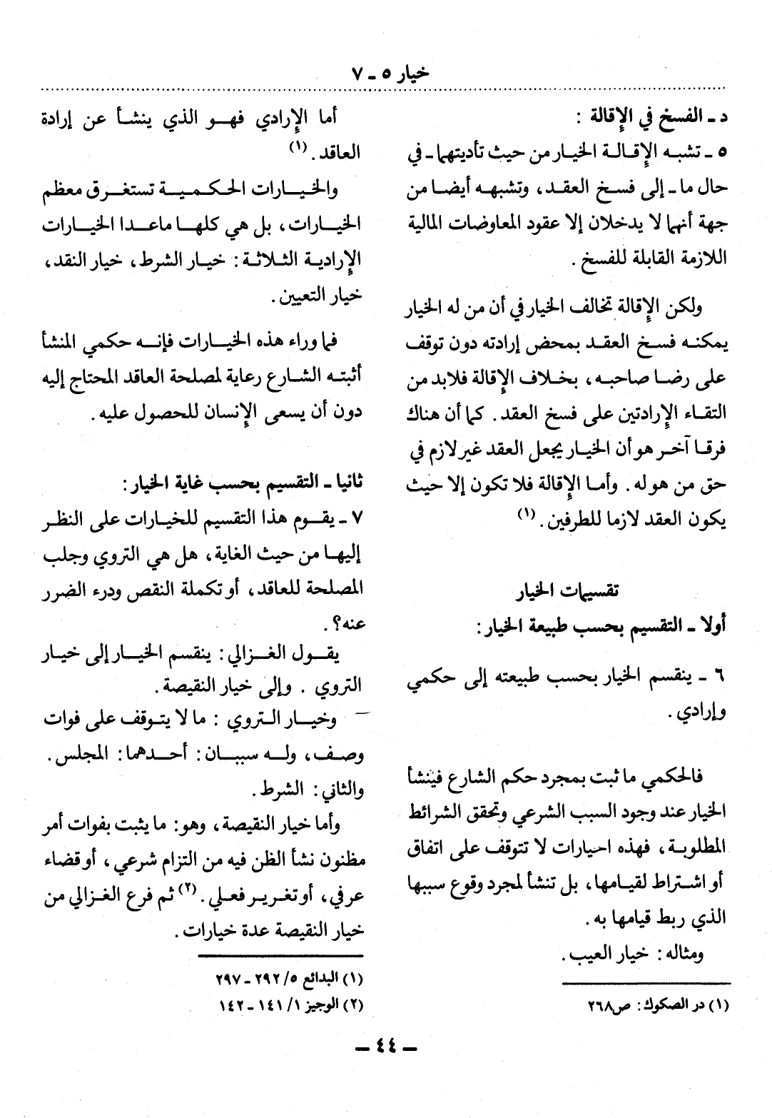 6 - يَنْقَسِمُ الْخِيَارُ بِحَسَبِ طَبِيعَتِهِ إِلَى حُكْمِيٍّ وَإِرَادِيٍّ.