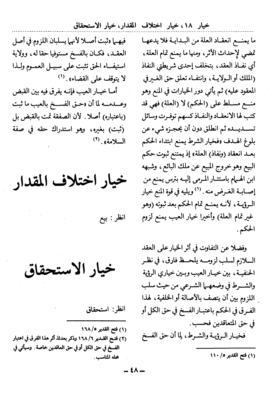 (2) فتح القدير 6 / 168 وذكر بعدئذ أثر هذا الفرق في اعتبار الفسخ في حق الكل أو في حق العاقدين خاصة. وسيأتي في محله المناسب.