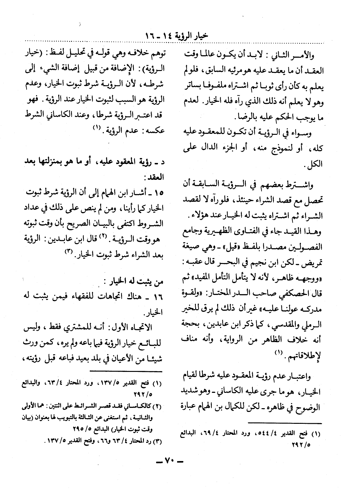 (1) فتح القدير 4 / 544، ورد المحتار 4 / 69، البدائع 5 / 292.