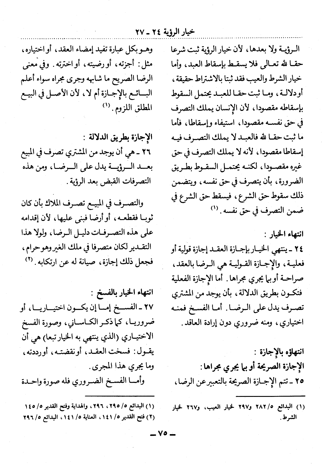 (2) فتح القدير 5 / 141، العناية 5 / 141، البدائع 5 / 296.