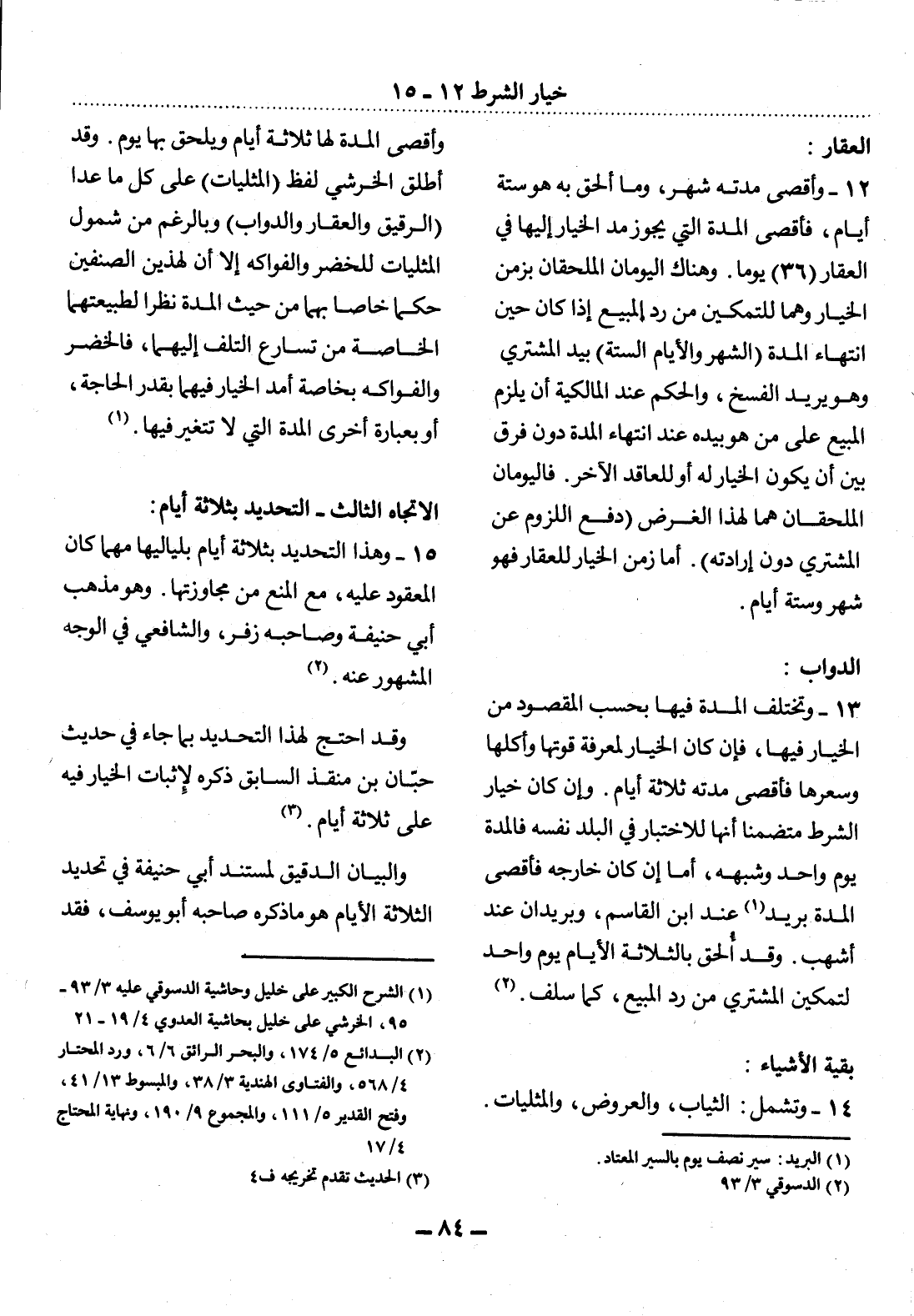 (1) الشرح الكبير على خليل وحاشية الدسوقي عليه 3 / 93 - 95، الخرشي على خليل بحاشية العدوي 4 / 19 - 21.