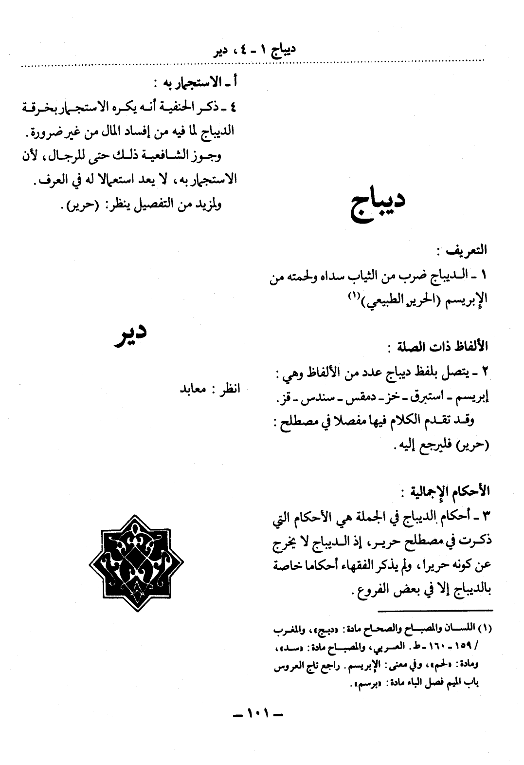(1) اللسان والمصباح والصحاح مادة: " دبج "، والمغرب / 159 - 160 - ط. العربي، والمصباح مادة: " سد "، ومادة: " لحم "، وفي معنى: الإبريسم. راجع تاج العروس باب الميم فصل الباء مادة: " برسم ".