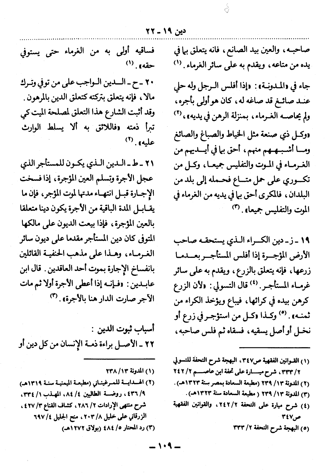 (1) القوانين الفقهية ص 347، البهجة شرح التحفة للتسولي 2 / 333، شرح ميارة على تحفة ابن عاصم 2 / 242