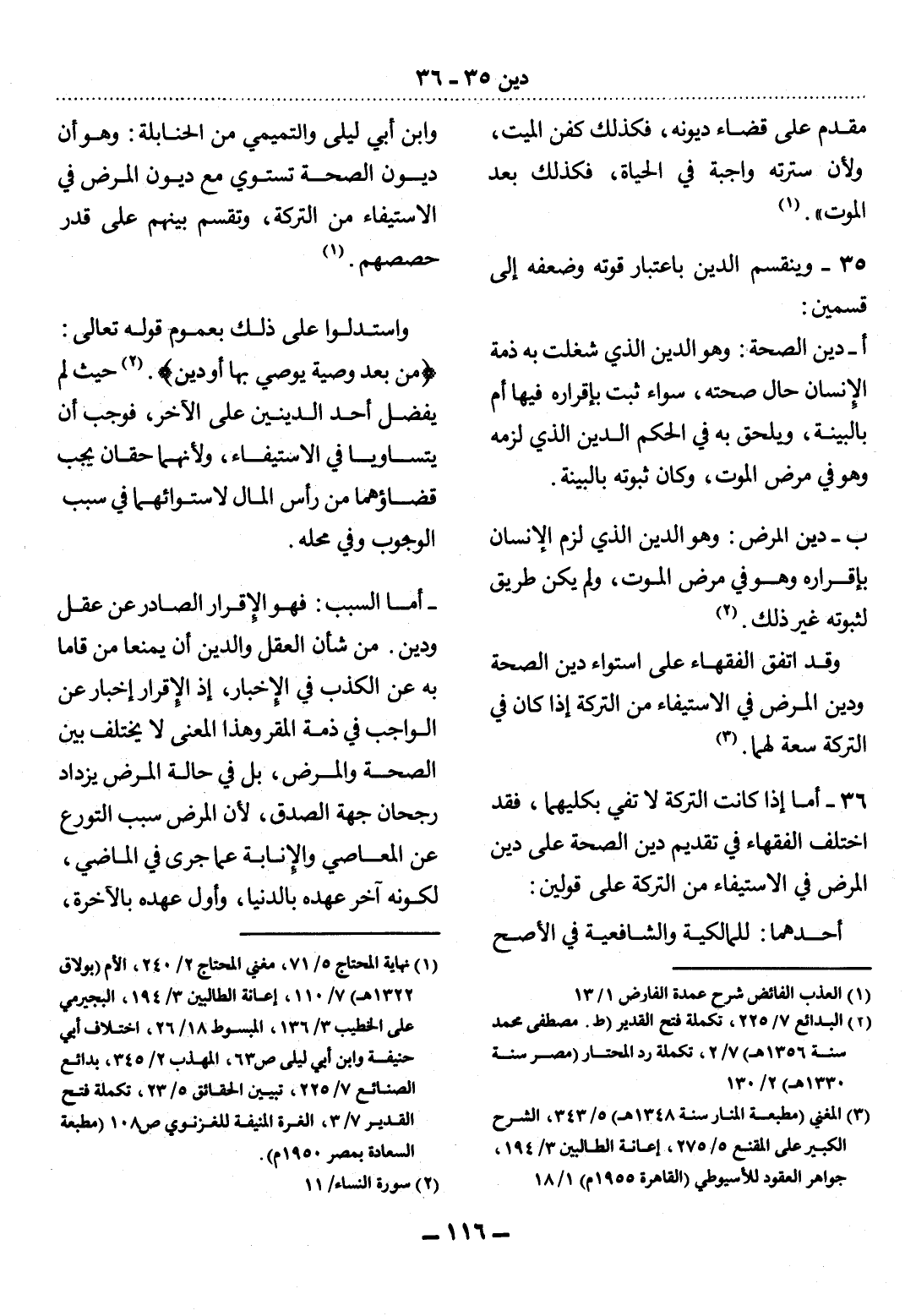 35 - وَيَنْقَسِمُ الدَّيْنُ بِاعْتِبَارِ قُوَّتِهِ وَضَعْفِهِ إِلَى قِسْمَيْنِ: