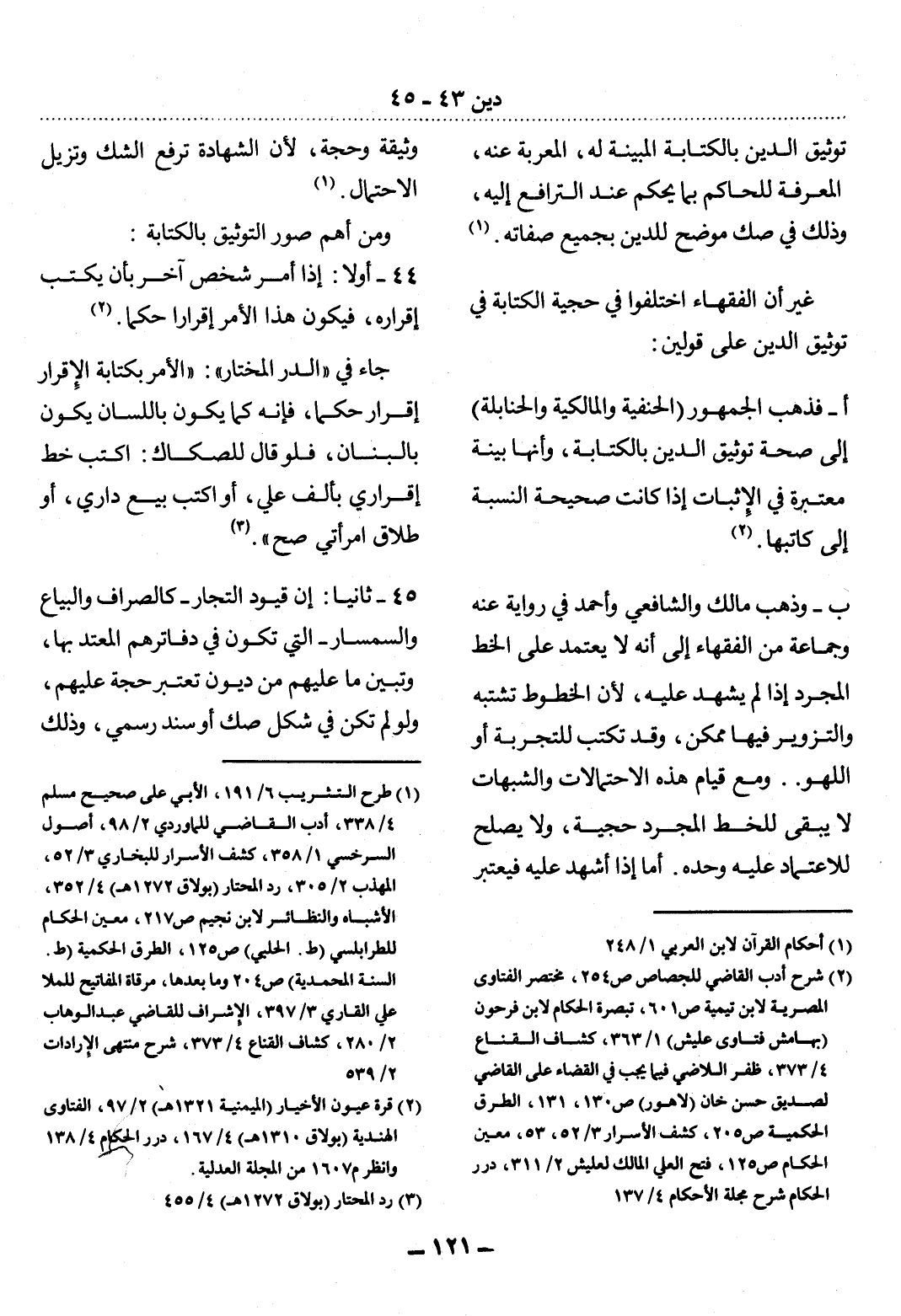 غَيْرَ أَنَّ الْفُقَهَاءَ اخْتَلَفُوا فِي حُجِّيَّةِ الْكِتَابَةِ فِي تَوْثِيقِ الدَّيْنِ عَلَى قَوْلَيْنِ: