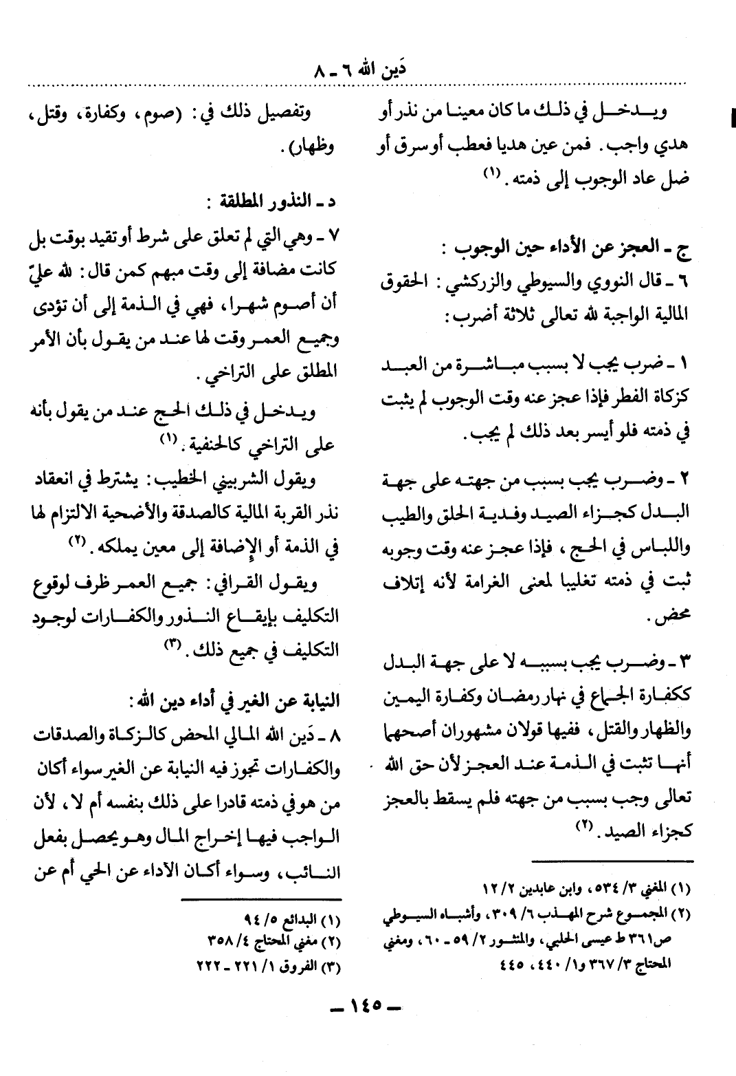 (2) المجموع شرح المهذب 6 / 309، وأشباه السيوطي ص 361 ط عيسى الحلبي، والمنثور 2 / 59 - 60، ومغني المحتاج 3 / 367 و 1 / 440، 445.