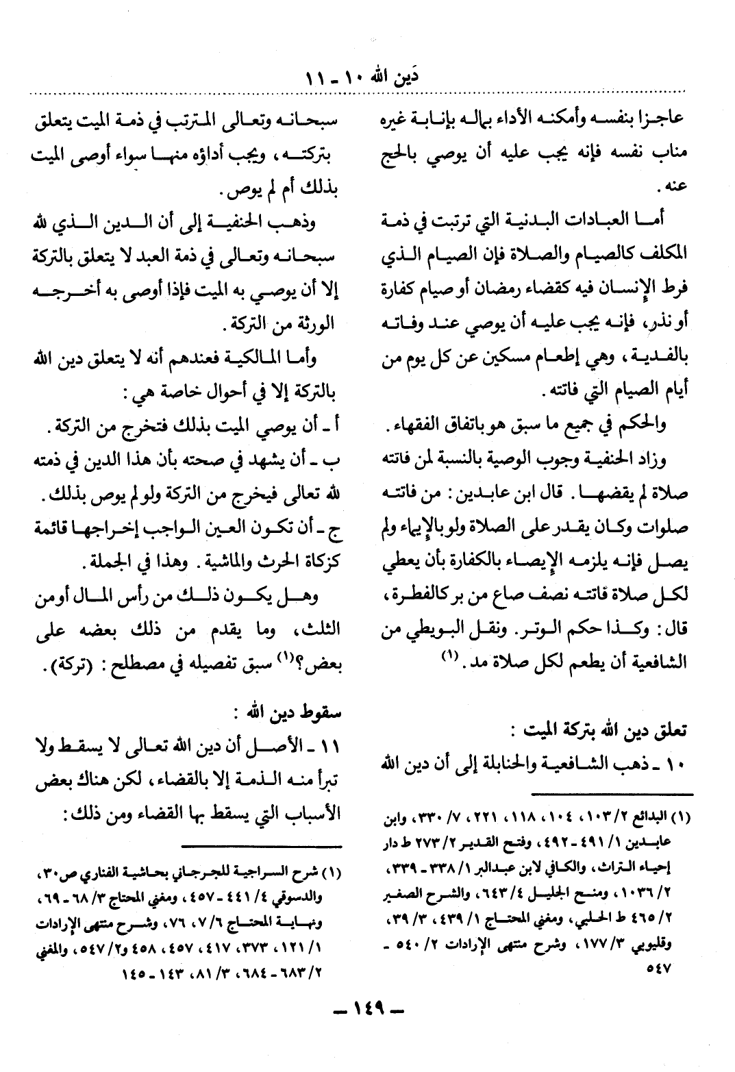 10 - ذَهَبَ الشَّافِعِيَّةُ وَالْحَنَابِلَةُ إِلَى أَنَّ دَيْنَ اللَّهِ