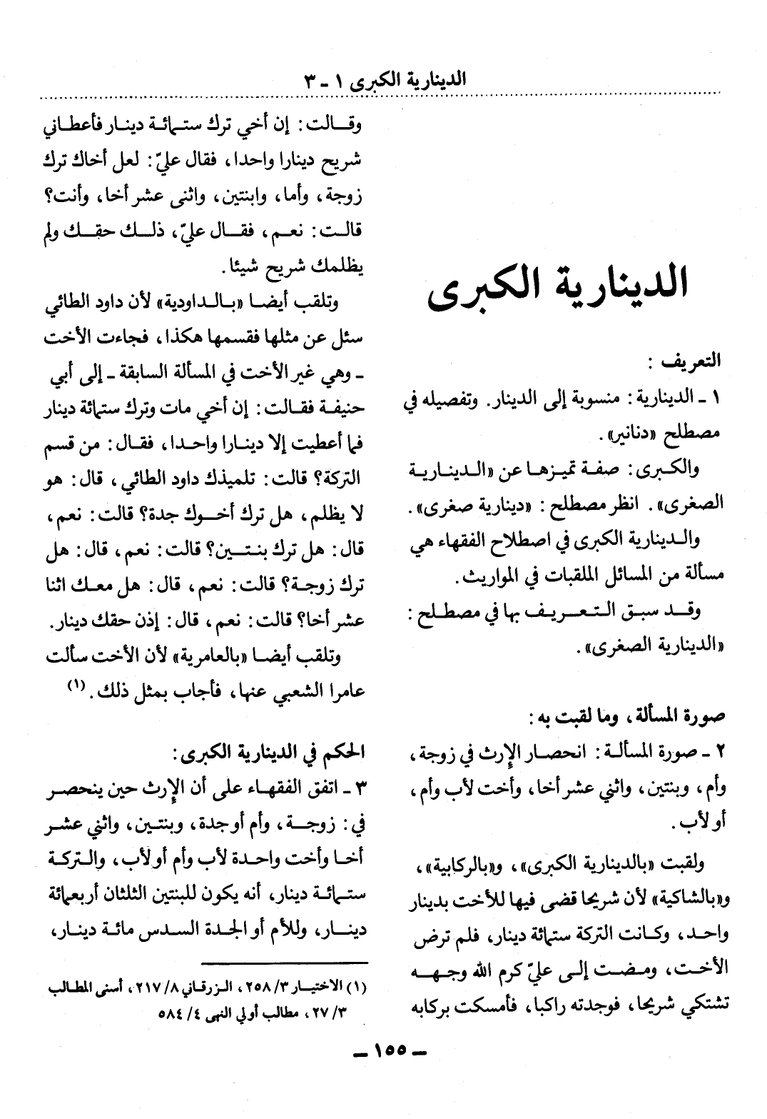 الْحُكْمُ فِي الدِّينَارِيَّةِ الْكُبْرَى: