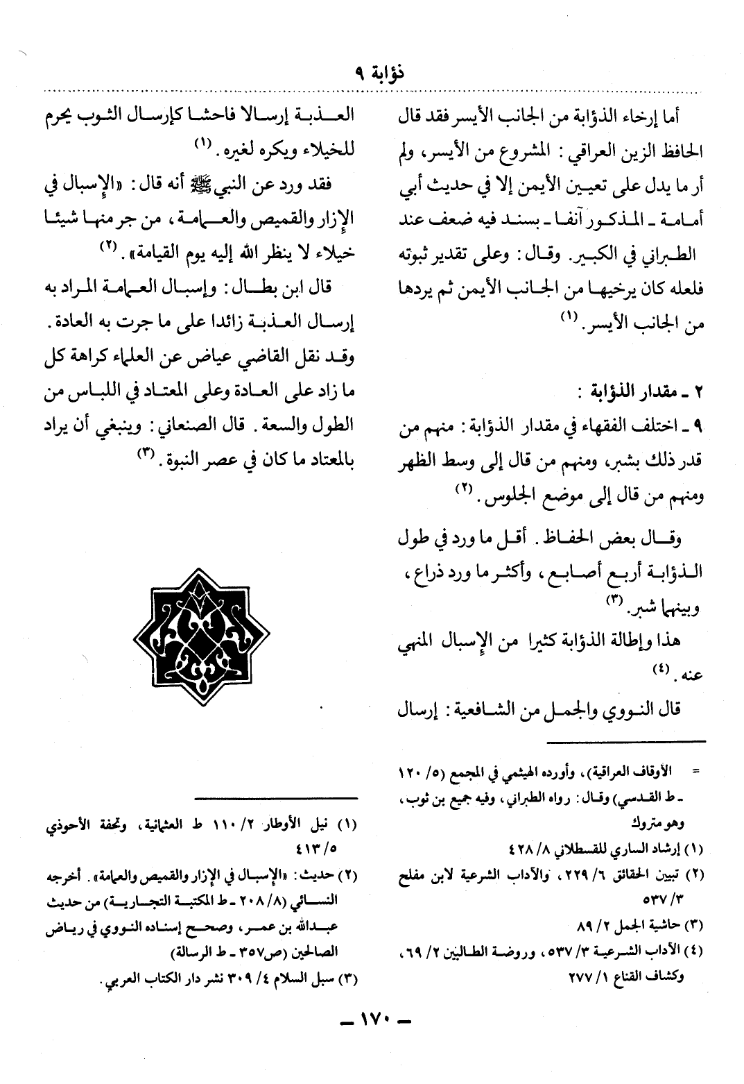 (2) حديث: " الإسبال في الإزار والقميص والعمامة " أخرجه النسائي (8 / 208 - ط المكتبة التجارية) من حديث عبد الله بن عمر، وصحح إسناده النووي في رياض الصالحين (ص 357 - ط الرسالة) .