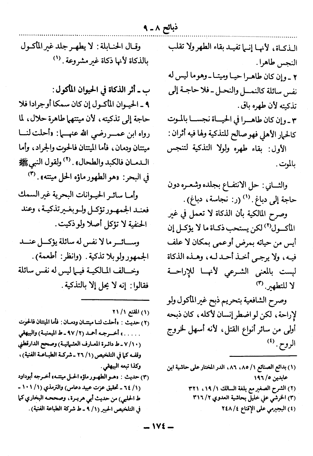 ب - أَثَرُ الذَّكَاةِ فِي الْحَيَوَانِ الْمَأْكُول: