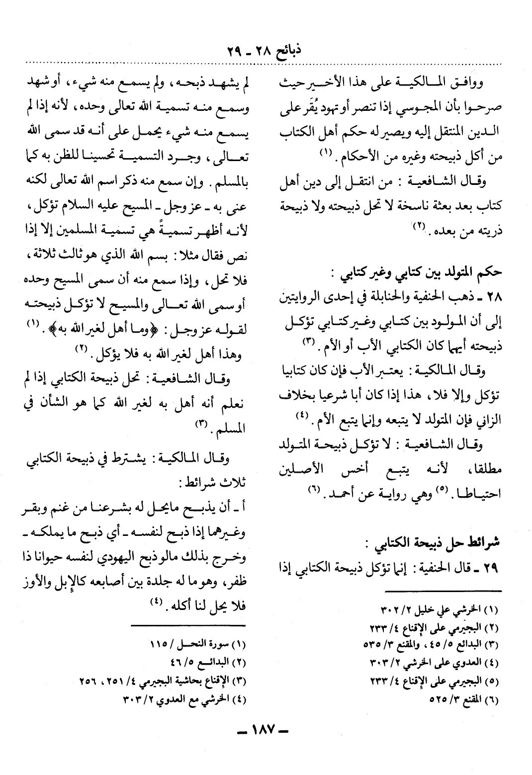 28 - ذَهَبَ الْحَنَفِيَّةُ وَالْحَنَابِلَةُ فِي إِحْدَى الرِّوَايَتَيْنِ إِلَى أَنَّ الْمَوْلُودَ بَيْنَ كِتَابِيٍّ وَغَيْرِ كِتَابِيٍّ تُؤْكَل ذَبِيحَتُهُ أَيُّهُمَا كَانَ الْكِتَابِيُّ الأَْبَ أَوِ الأُْمَّ. (3)