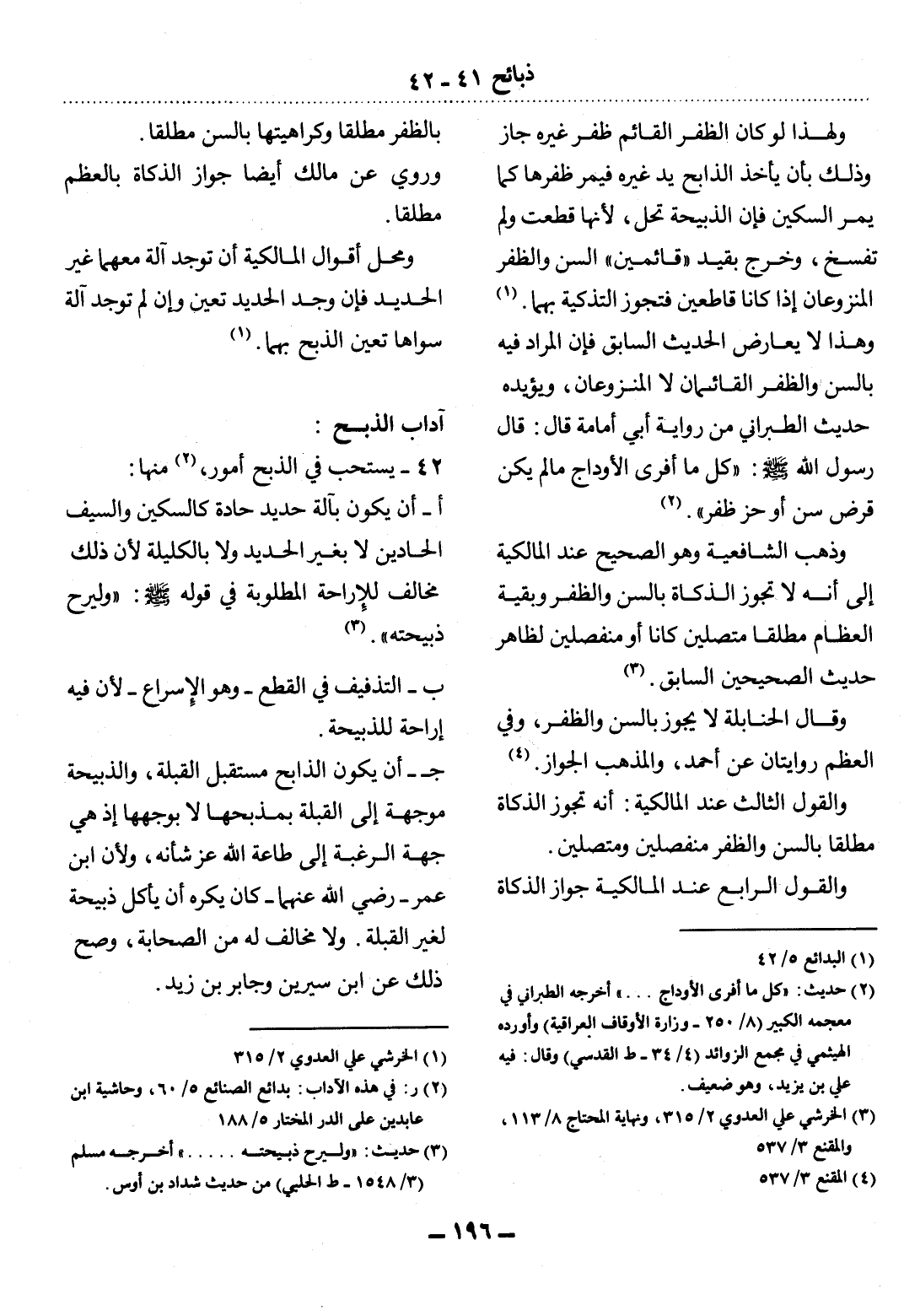 (2) حديث: " كل ما أفرى الأوداج. . . " أخرجه الطبراني في معجمه الكبير (8 / 250 - وزارة الأوقاف العراقية) ، وأورده الهيثمي في مجمع الزوائد (4 / 34 - ط القدسي) ، وقال: فيه علي بن يزيد، وهو ضعيف.