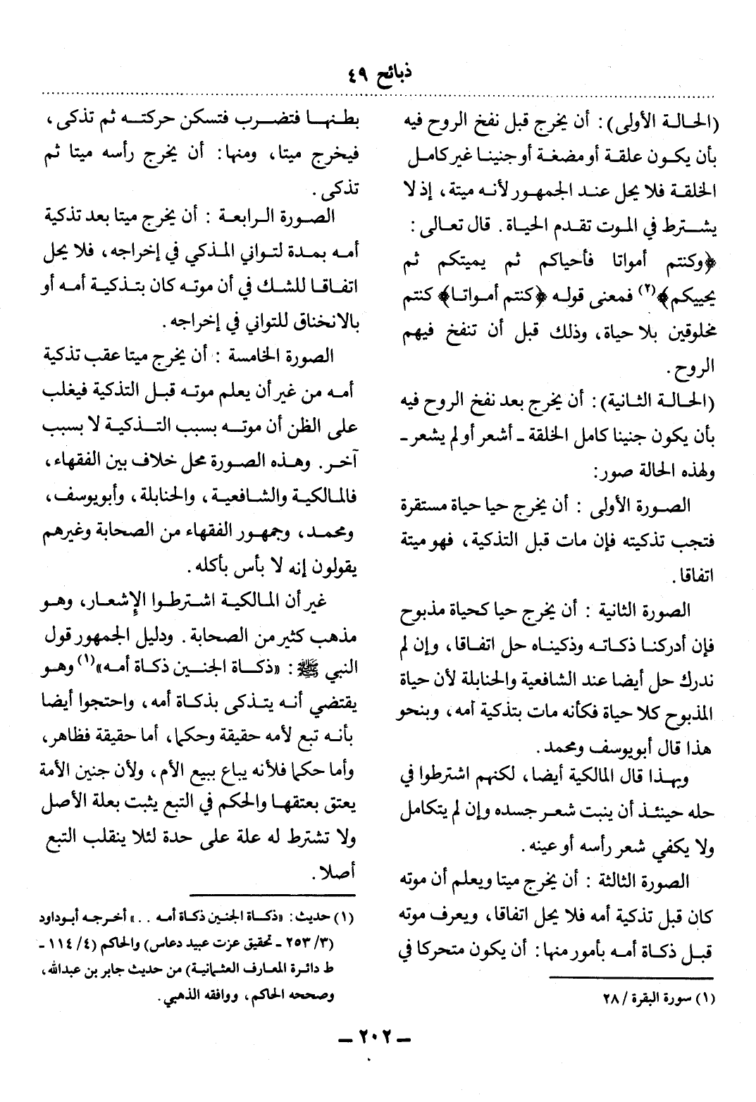 (1) حديث: " ذكاة الجنين ذكاة أمه. . . . " أخرجه أبو داود (3 / 253 - تحقيق عزت عبيد دعاس) ، والحاكم (4 / 114 - ط دائرة المعارف العثمانية) ، من حديث جابر بن عبد الله، وصححه الحاكم، ووافقه الذهبي.