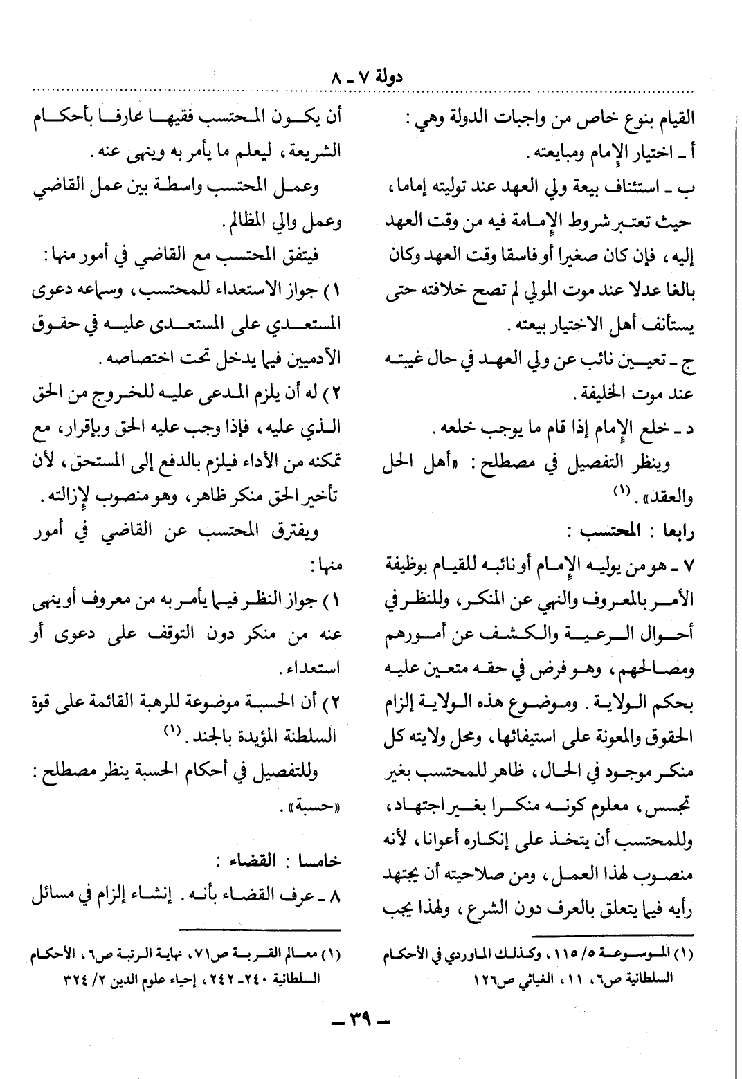 (1) الموسوعة 5 / 115، وكذلك الماوردي في الأحكام السلطانية ص 6، 11، الغياثي ص 126.