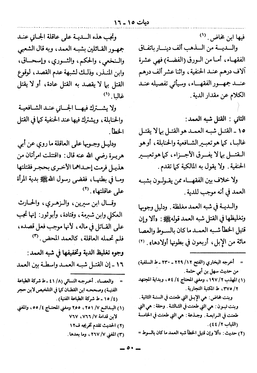 16 - إِنَّ الْقَتْل شِبْهَ الْعَمْدِ وَاسِطَةٌ بَيْنَ الْعَمْدِ