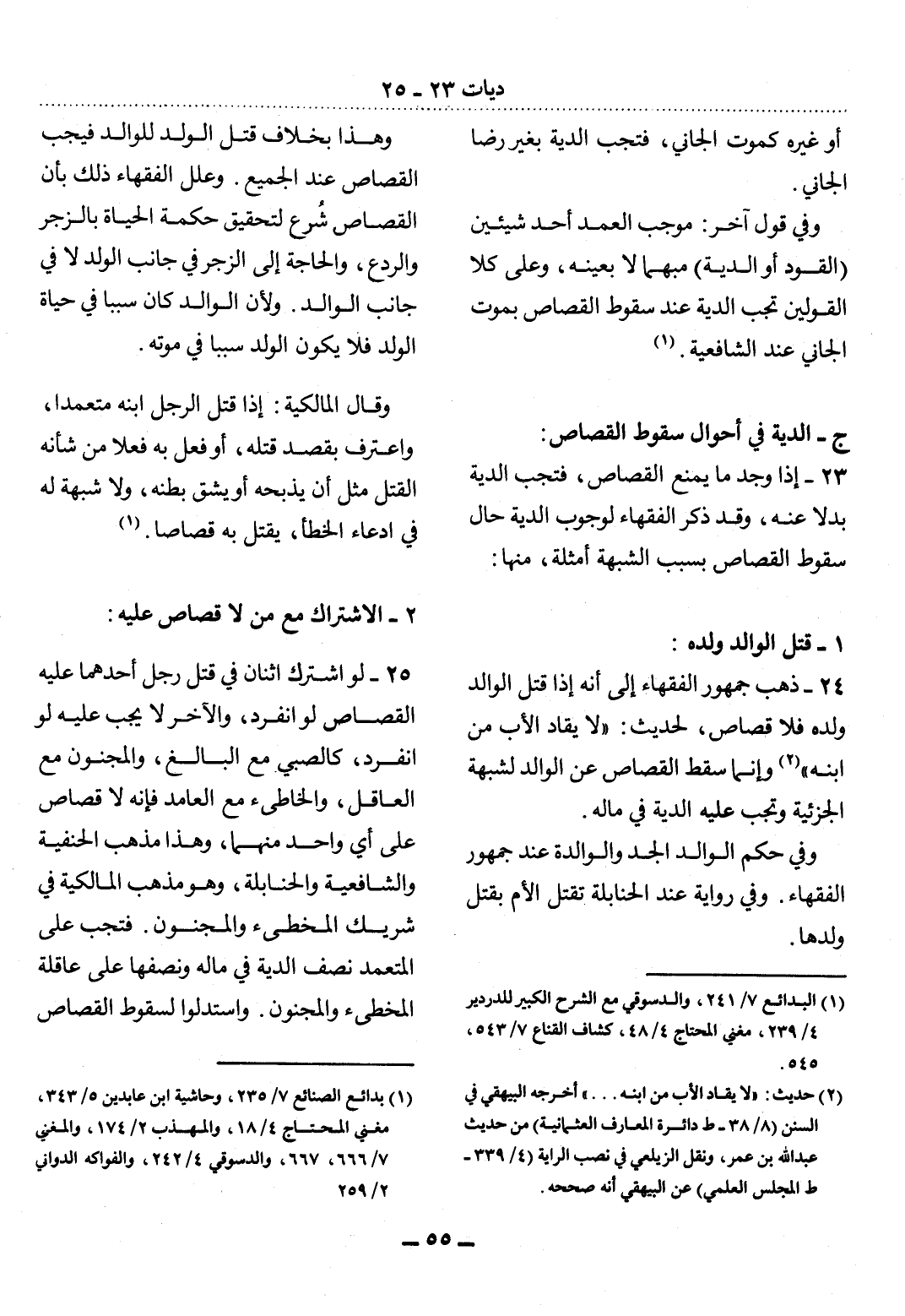 (2) حديث: " لا يقاد الأب من ابنه. . . " أخرجه البيهقي في السنن (8 / 38 - ط دائرة المعارف العثمانية) من حديث عبد الله بن عمر، ونقل الزيلعي في نصب الراية (4 / 339 - ط المجلس العلمي) عن البيهقي أنه صححه.