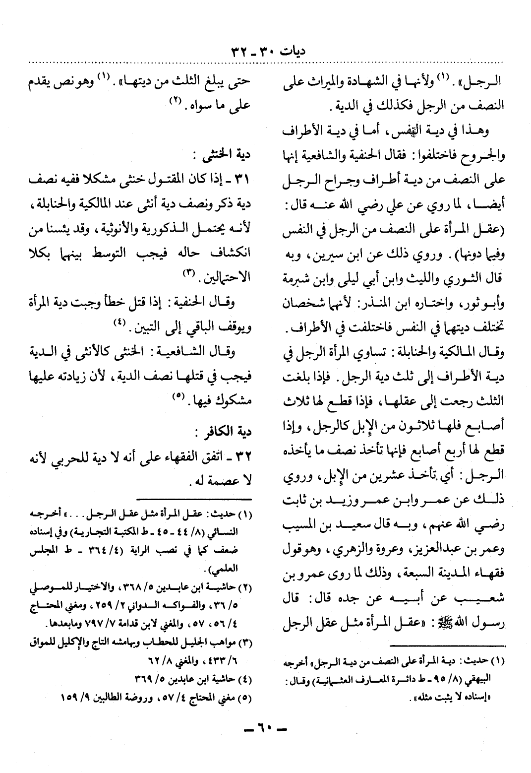 (1) حديث: " عقل المرأة مثل عقل الرجل. . . " أخرجه النسائي (8 / 44 - 45 - ط المكتبة التجارية) وفي إسناده ضعف كما في نصب الراية (4 / 364 - ط المجلس العلمي) .