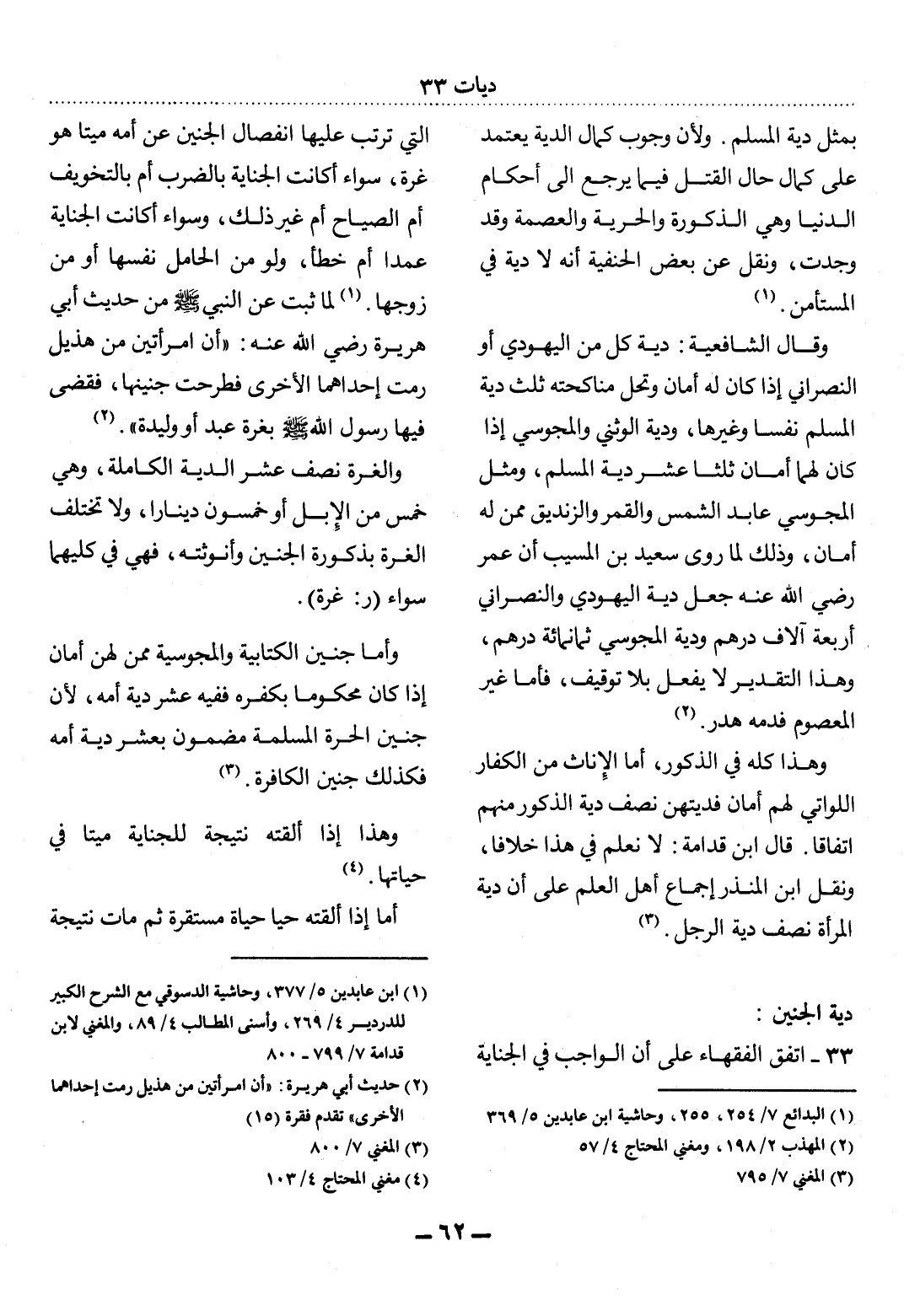 33 - اتَّفَقَ الْفُقَهَاءُ عَلَى أَنَّ الْوَاجِبَ فِي الْجِنَايَةِ
