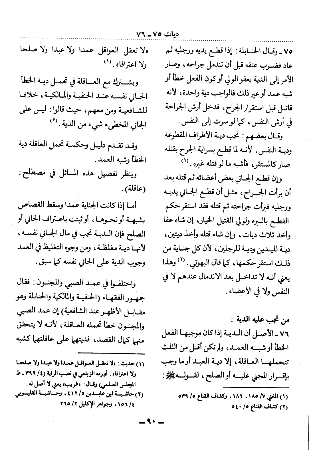 76 - الأَْصْل أَنَّ الدِّيَةَ إِذَا كَانَ مُوجِبُهَا الْفِعْل الْخَطَأَ أَوْ شِبْهَ الْعَمْدِ، وَلَمْ تَكُنْ أَقَل مِنَ الثُّلُثِ تَتَحَمَّلُهَا الْعَاقِلَةُ، إِلاَّ دِيَةَ الْعَبْدِ أَوْ مَا وَجَبَ بِإِقْرَارِ الْمَجْنِيِّ عَلَيْهِ أَوِ الصُّلْحِ؛ لِقَوْلِهِ صَلَّى اللَّهُ عَلَيْهِ وَسَلَّمَ: {