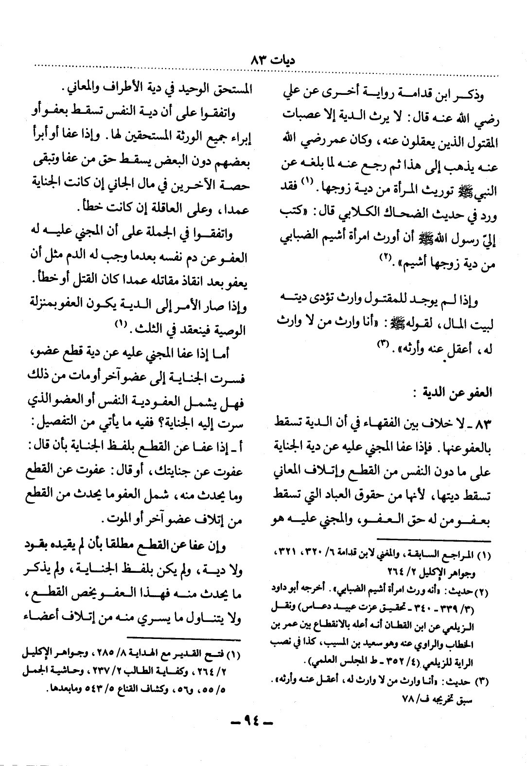 (1) المراجع السابقة، والمغني لابن قدامة 6 / 320، 321، وجواهر الإكليل 2 / 264