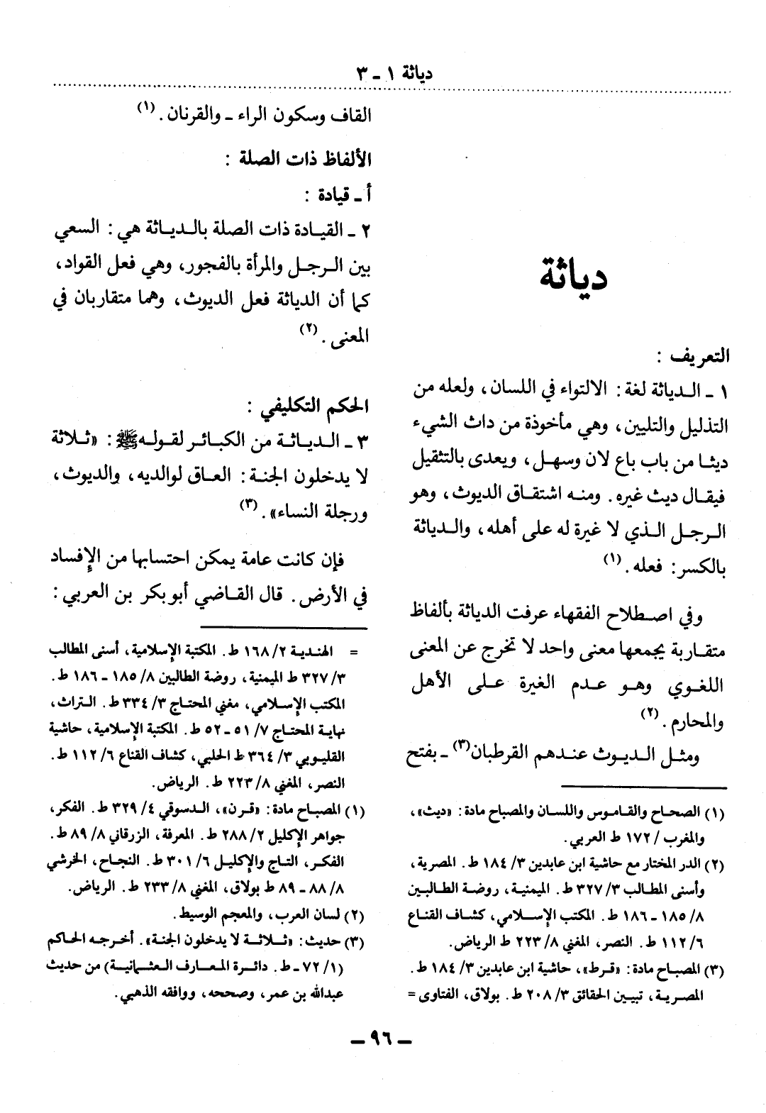3 - الدِّيَاثَةُ مِنَ الْكَبَائِرِ لِقَوْلِهِ صَلَّى اللَّهُ عَلَيْهِ وَسَلَّمَ: ثَلاَثَةٌ لاَ يَدْخُلُونَ الْجَنَّةَ: الْعَاقُّ لِوَالِدَيْهِ، وَالدَّيُّوثُ، وَرَجُلَةُ النِّسَاءِ (3) .