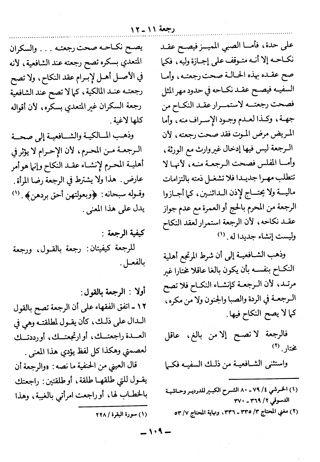 فَالرَّجْعَةُ لاَ تَصِحُّ إِلاَّ مِنْ بَالِغٍ عَاقِلٍ مُخْتَارٍ (2) .