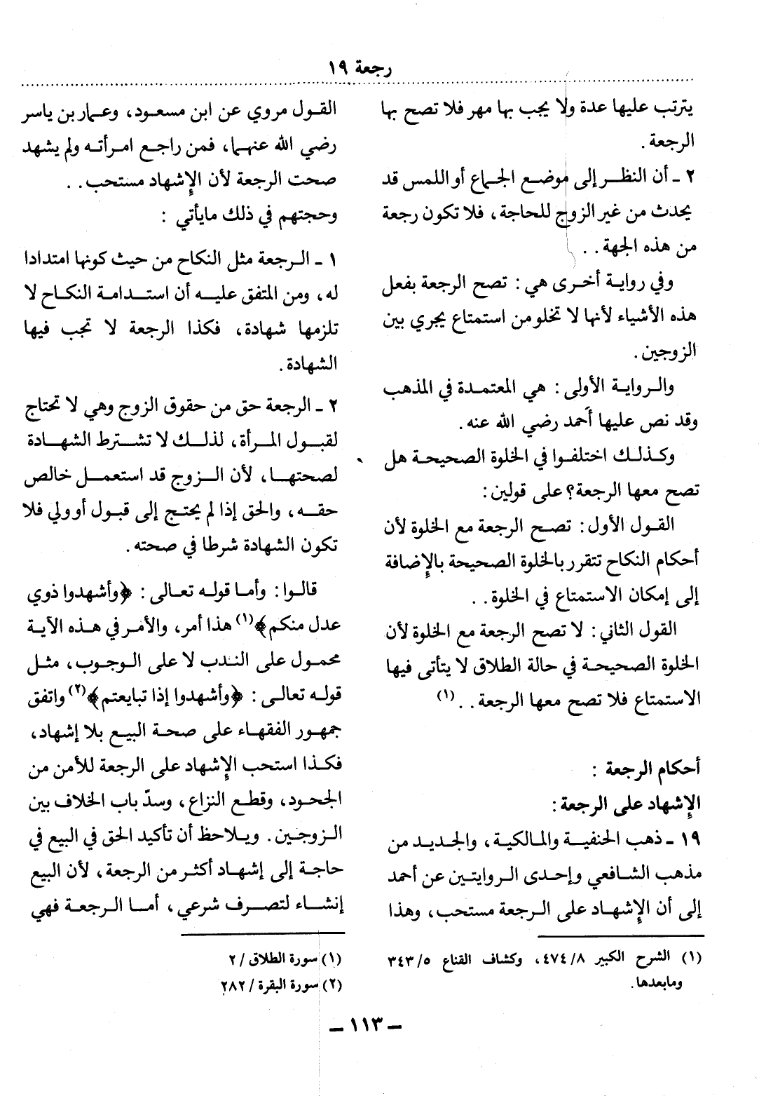 19 - ذَهَبَ الْحَنَفِيَّةُ وَالْمَالِكِيَّةُ، وَالْجَدِيدُ مِنْ مَذْهَبِ الشَّافِعِيِّ وَإِحْدَى الرِّوَايَتَيْنِ عَنْ أَحْمَدَ إِلَى أَنَّ الإِْشْهَادَ عَلَى الرَّجْعَةِ مُسْتَحَبٌّ، وَهَذَا