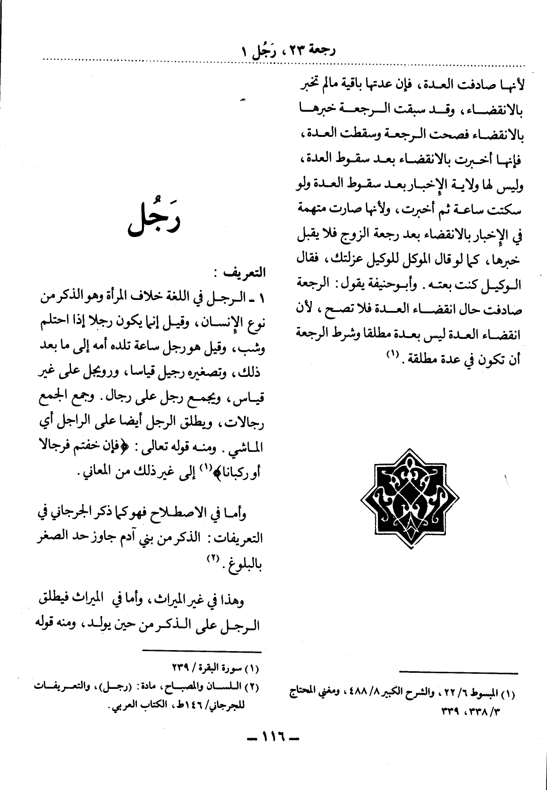 (2) اللسان والمصباح، مادة (رجل) والتعريفات للجرجاني / 146 ط، الكتاب العربي.