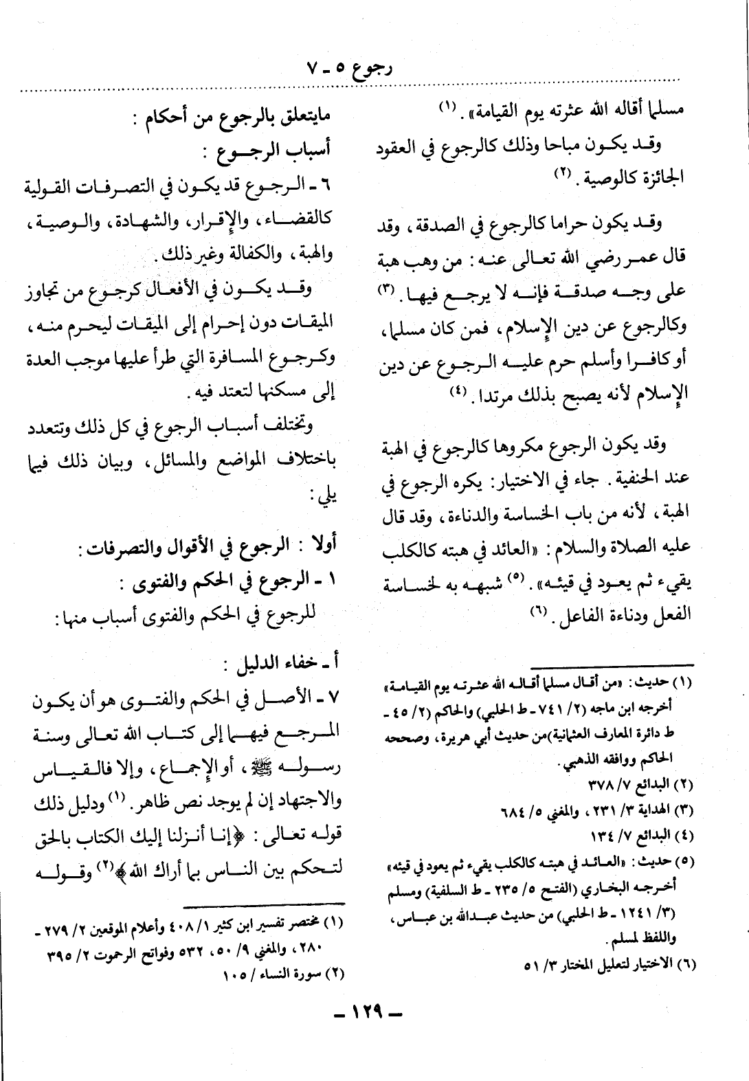 مَا يَتَعَلَّقُ بِالرُّجُوعِ مِنْ أَحْكَامٍ: