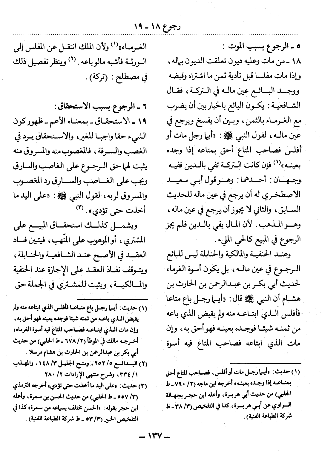 5 - الرُّجُوعُ بِسَبَبِ الْمَوْتِ: