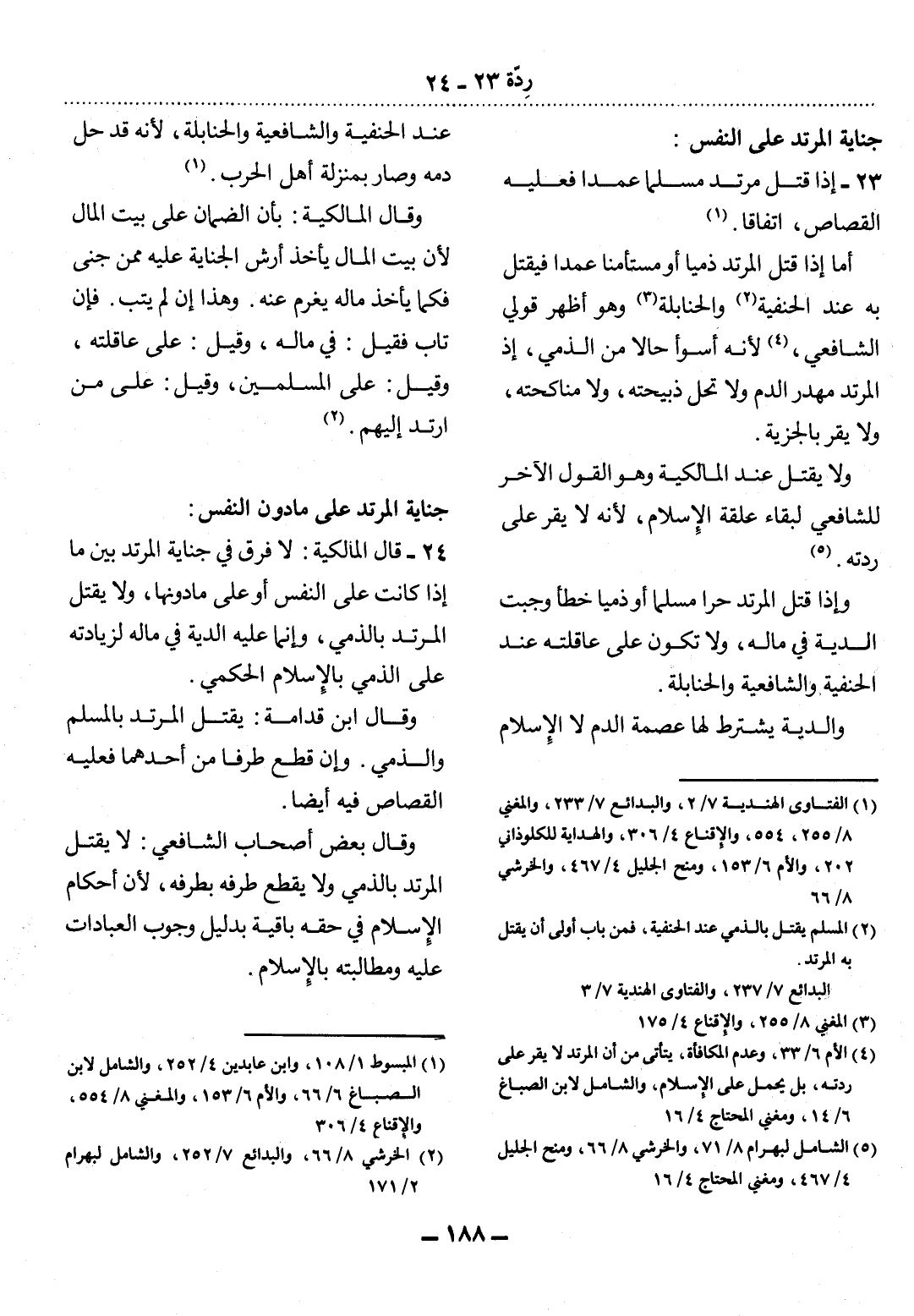 (4) الأم 6 / 33، وعدم المكافأة يتأتى من أن المرتد لا يقر على ردته، بل يحمل على الإسلام، والشامل لابن الصباغ 6 / 14، ومغني المحتاج 4 / 16.
