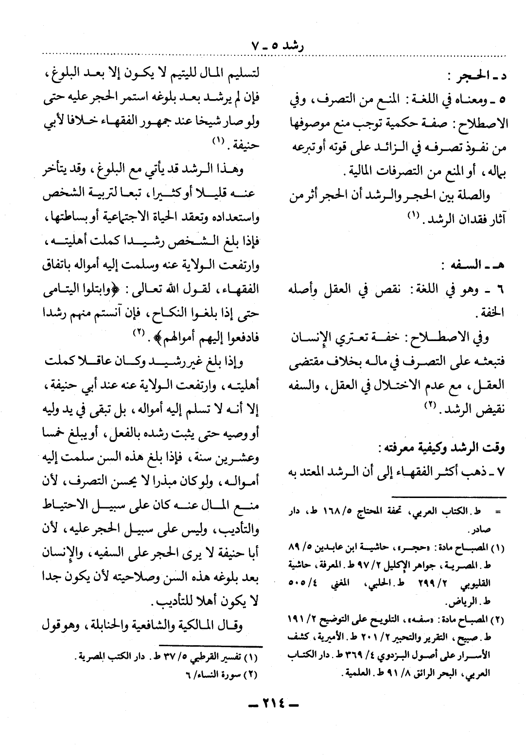 7 - ذَهَبَ أَكْثَرُ الْفُقَهَاءِ إِلَى أَنَّ الرُّشْدَ الْمُعْتَدَّ بِهِ