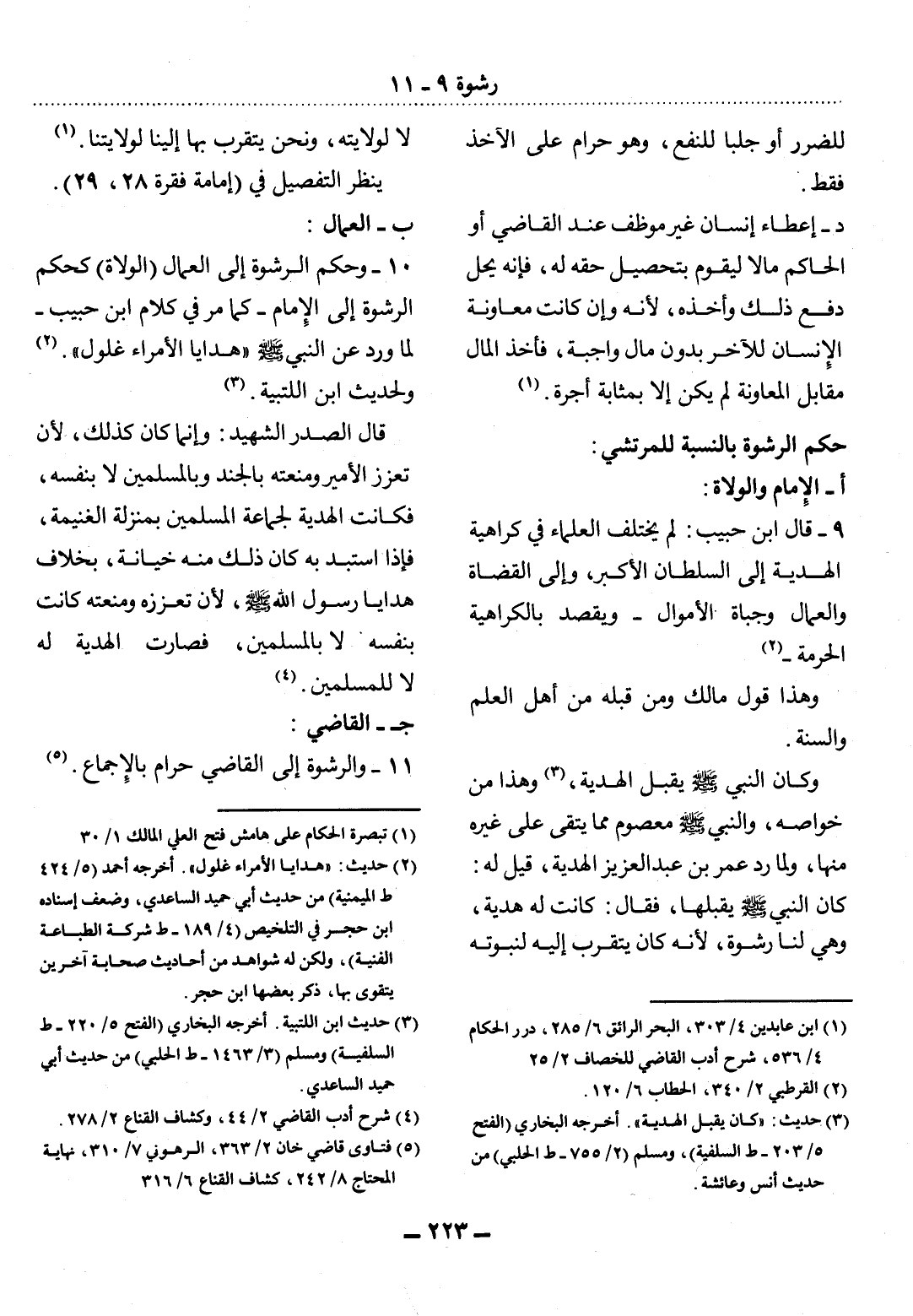 10 - وَحُكْمُ الرِّشْوَةِ إِلَى الْعُمَّال (الْوُلاَةِ) كَحُكْمِ الرِّشْوَةِ إِلَى الإِْمَامِ - كَمَا مَرَّ فِي كَلاَمِ ابْنِ حَبِيبٍ لِمَا وَرَدَ عَنِ النَّبِيِّ صَلَّى اللَّهُ عَلَيْهِ وَسَلَّمَ هَدَايَا الأُْمَرَاءِ غُلُولٌ (2) . وَلِحَدِيثِ ابْنِ اللُّتْبِيَّةِ (3) .