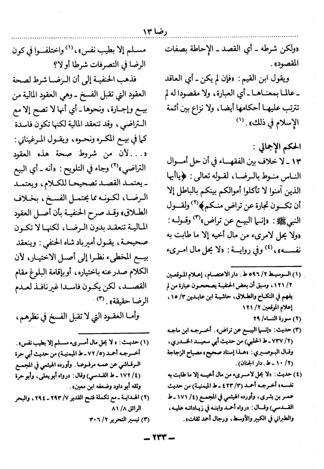 13 - لاَ خِلاَفَ بَيْنَ الْفُقَهَاءِ فِي أَنَّ حِل أَمْوَال النَّاسِ مَنُوطٌ بِالرِّضَا، لِقَوْلِهِ تَعَالَى: {يَا أَيُّهَا الَّذِينَ آمَنُوا لاَ تَأْكُلُوا أَمْوَالَكُمْ بَيْنَكُمْ بِالْبَاطِل إِلاَّ أَنْ تَكُونَ تِجَارَةً عَنْ تَرَاضٍ مِنْكُمْ (2) } وَلِقَوْل النَّبِيِّ صَلَّى اللَّهُ عَلَيْهِ وَسَلَّمَ: إِنَّمَا الْبَيْعُ عَنْ تَرَاضٍ (3) وَقَوْلِهِ: وَلاَ يَحِل لاِمْرِئٍ مِنْ مَال أَخِيهِ إِلاَّ مَا طَابَتْ بِهِ نَفْسُهُ (4) ، وَفِي رِوَايَةٍ: لاَ يَحِل مَال امْرِئٍ