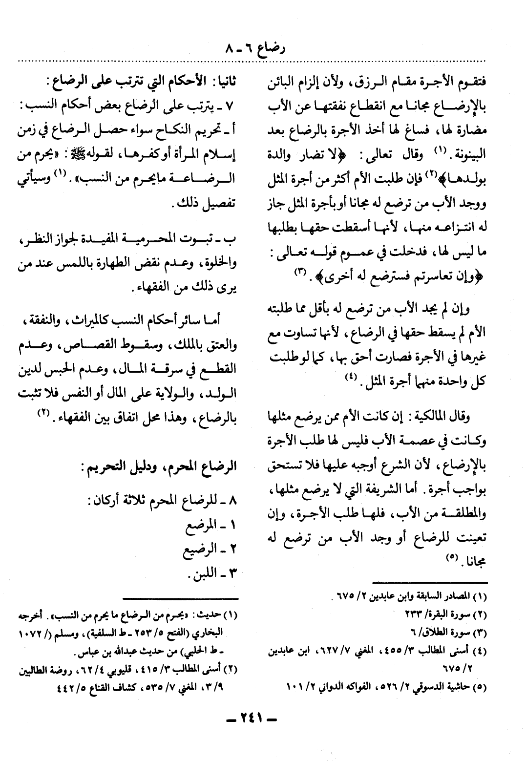 8 - لِلرَّضَاعِ الْمُحَرِّمِ ثَلاَثَةُ أَرْكَانٍ: