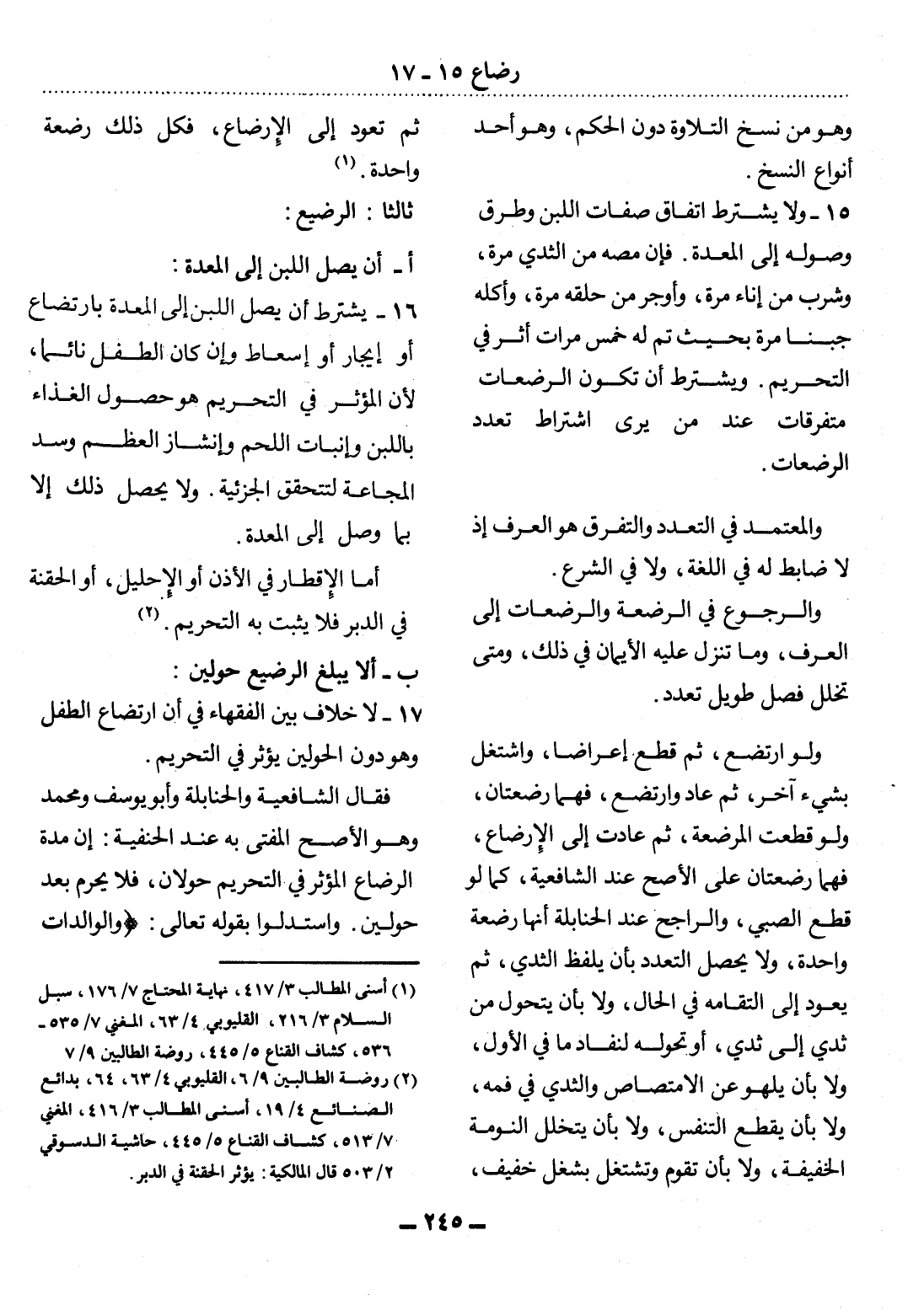 (1) أسنى المطالب 3 / 417، نهاية المحتاج 7 / 176، سبل السلام 3 / 216، القليوبي 4 / 63، المغني 7 / 535 - 536، كشاف القناع 5 / 445، روضة الطالبين 9 / 7.