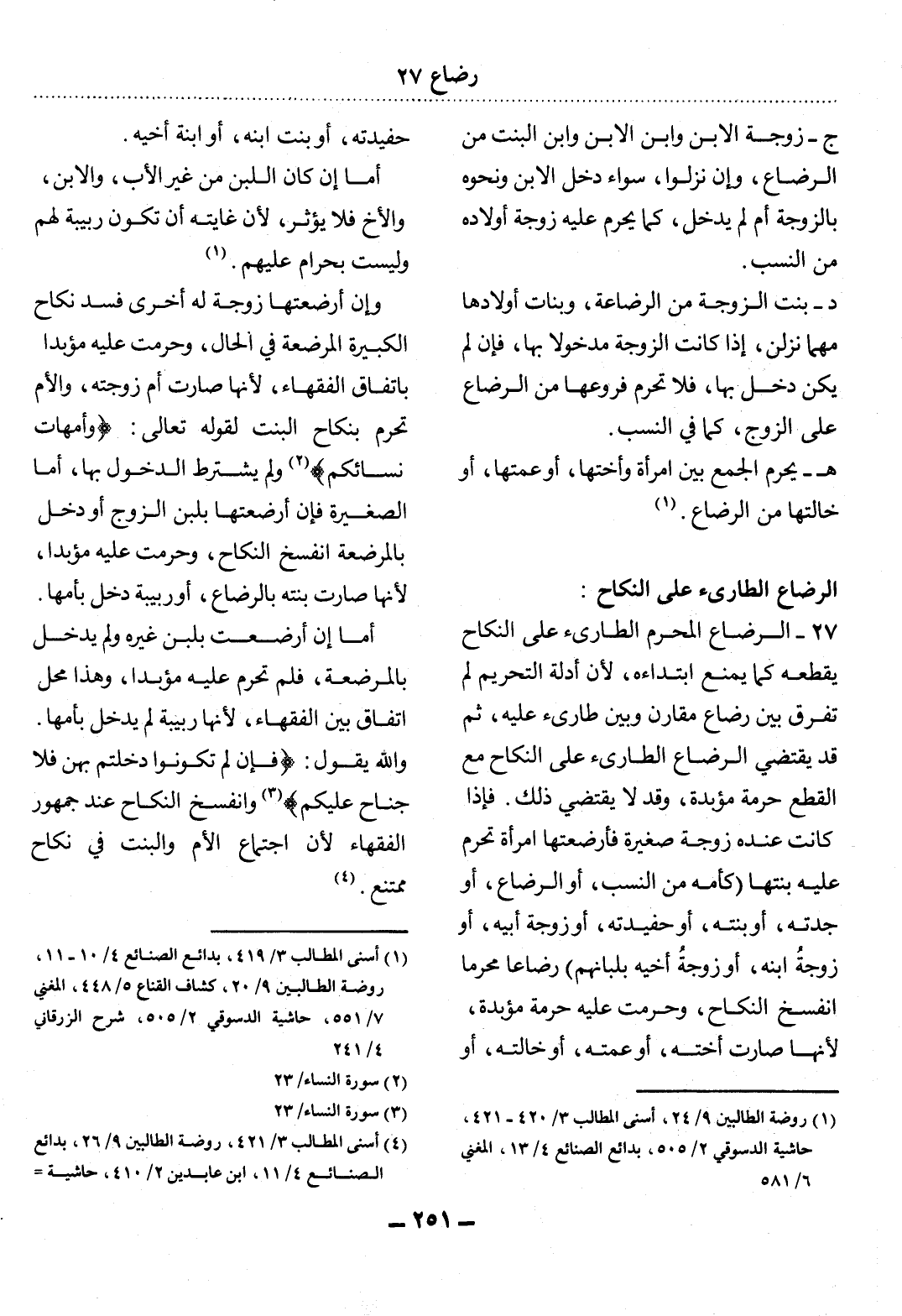 (4) أسنى المطالب 3 / 421، روضة الطالبين 9 / 26، بدائع الصنائع 4 / 11، ابن عابدين 2 / 410، حاشية الدسوقي 1 / 505، المغني 7 / 549، كشاف القناع 5 / 447.