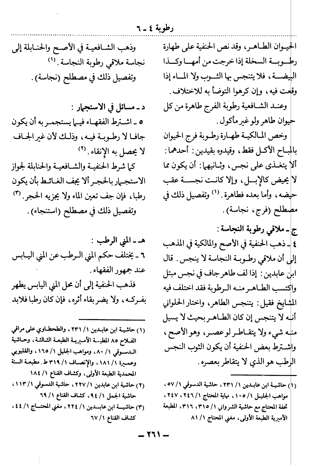 (1) حاشية ابن عابدين 1 / 231، حاشية الدسوقي 1 / 57، مواهب الجليل 1 / 105، نهاية المحتاج 1 / 246، 247، تحفة المحتاج مع حاشية الشرواني 1 / 315، 316، المطبعة الأميرية الطبعة الأولى، مغني المحتاج 1 / 81.