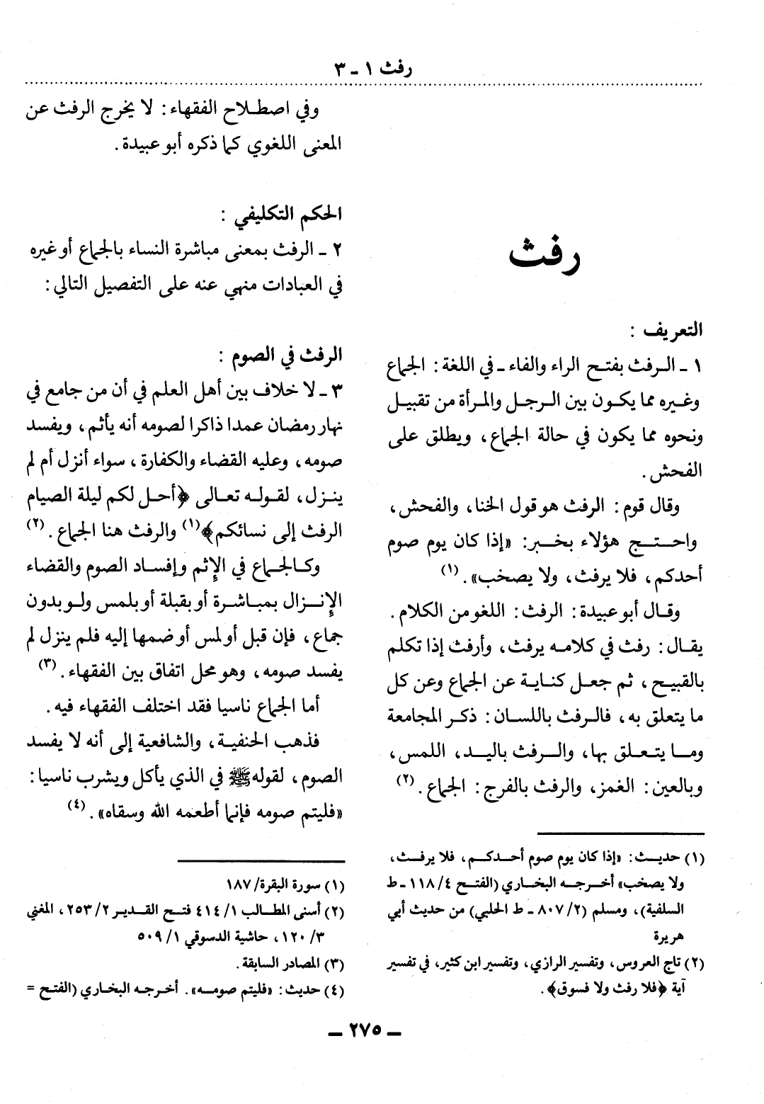 (2) تاج العروس، وتفسير الرازي، وتفسير ابن كثير، في تفسير آية (فَلاَ رَفَثَ وَلاَ فُسُوقَ) .