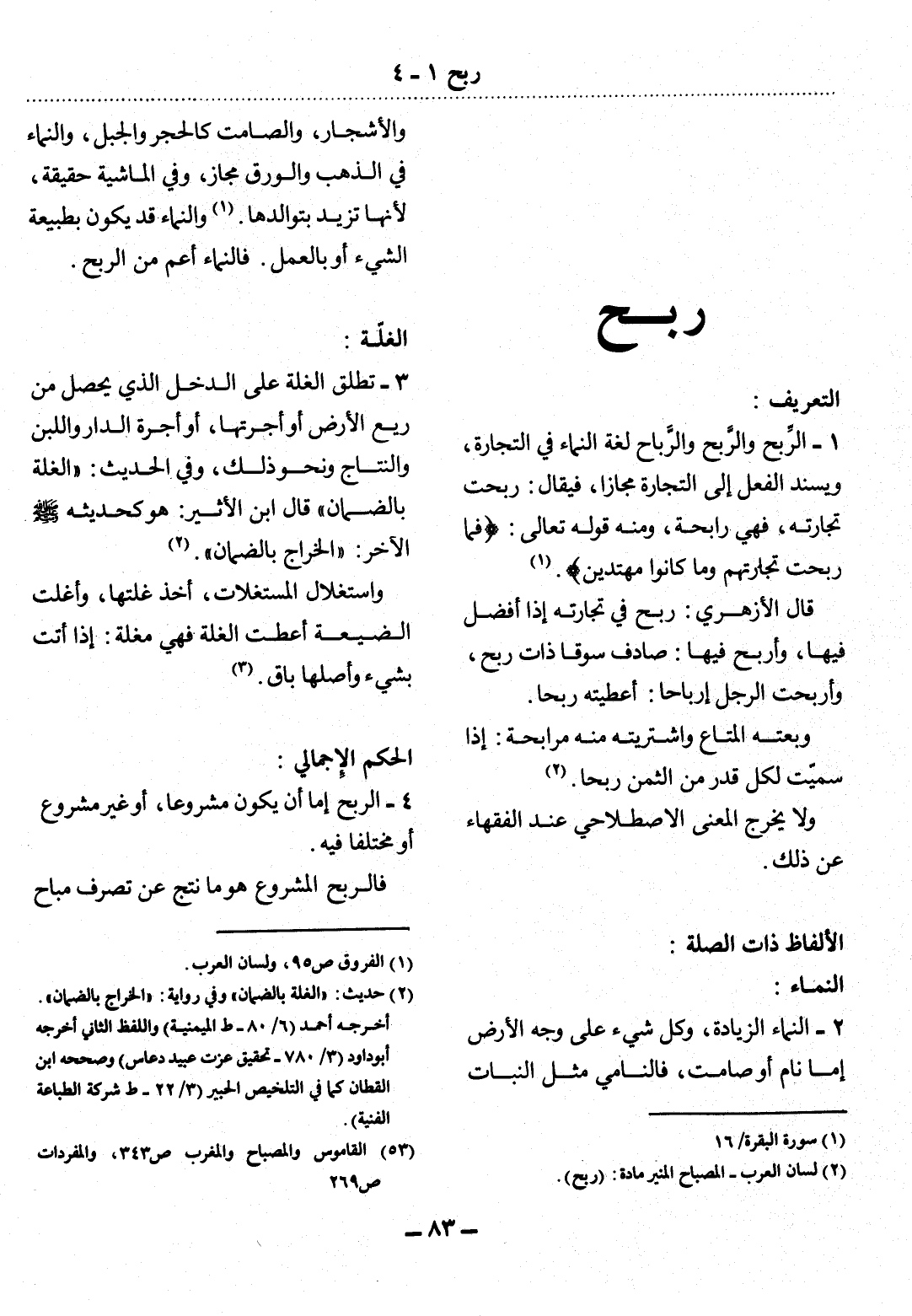 (2) لسان العرب المصباح المنير مادة: (ربح) .