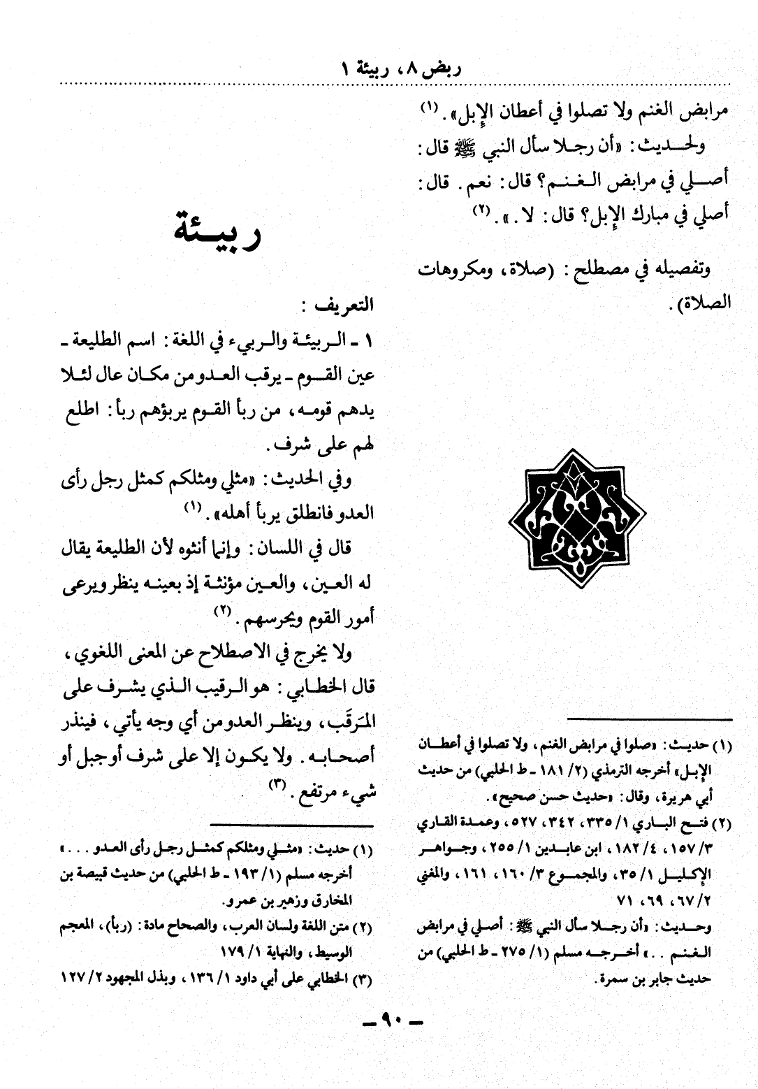 (2) متن اللغة ولسان العرب، والصحاح مادة: (ربأ) ، المعجم الوسيط، والنهاية 1 / 179.