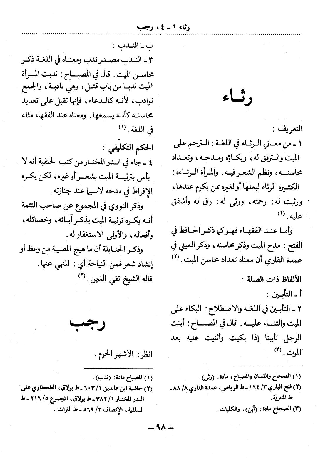 (1) الصحاح واللسان والمصباح، مادة: (رثى) .